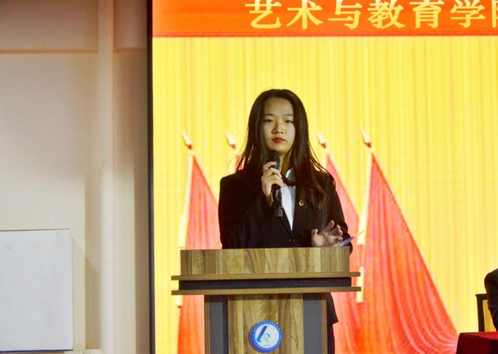 大会第八项,艺术与教育学院学生代表王静雅宣读《艺术与教育学院团代会代表候选人情况》