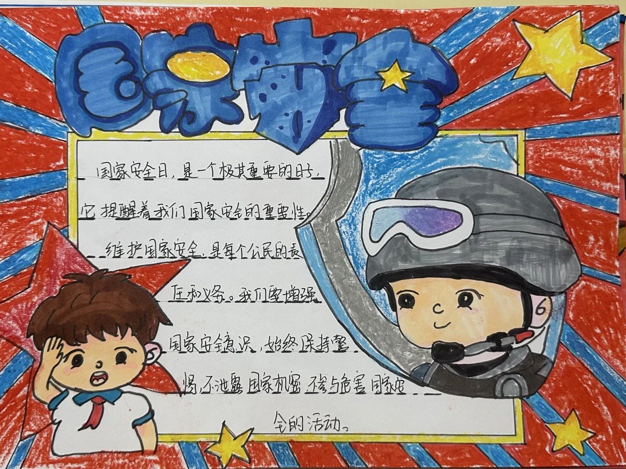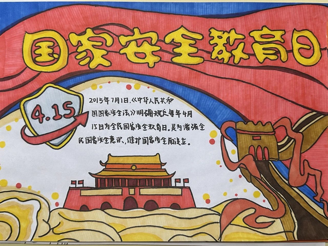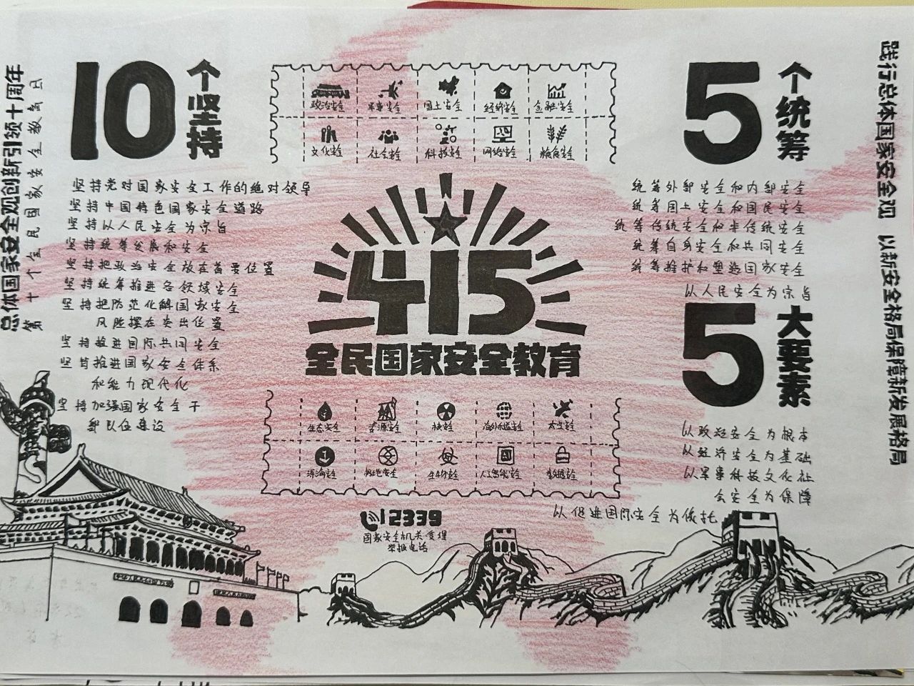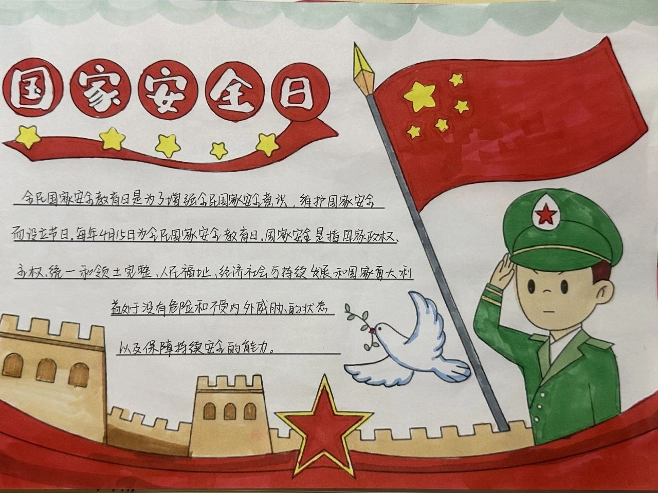 为深入贯彻总体国家安全观,切实增强青年学生的国家安全意识和责任担当,提升维护国家安全的能力素养,激发艺术创作活力。2025年4月14日至4月18日,艺术与教育学院开展了"国家安全,青春守护"主题手抄报创作活动。