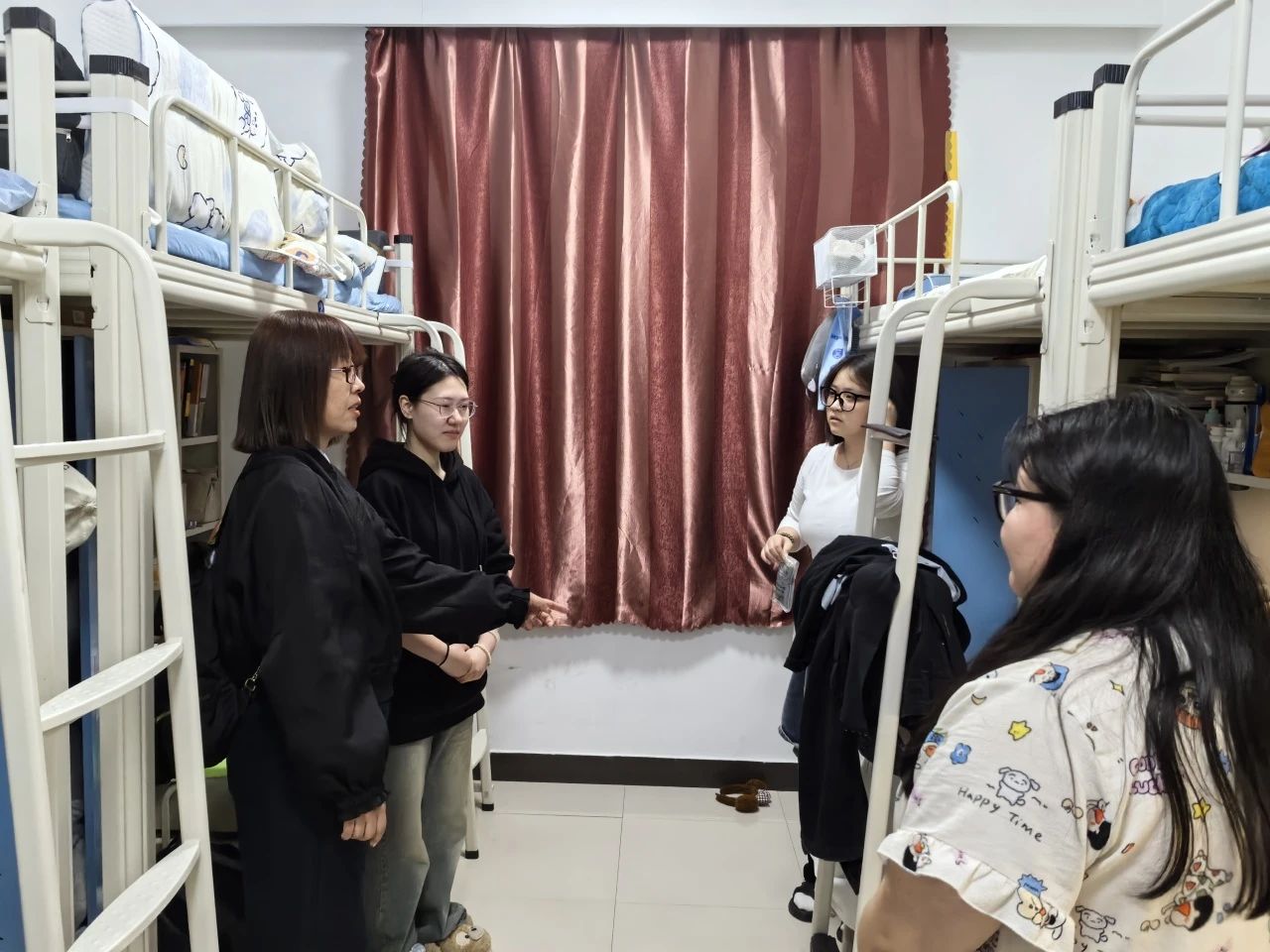 辅导员们分组前往学生公寓,依照名单仔细核对学生人数,重点排查夜不归寝情况,了解他们的学习、生活状况,提醒大家遵守校规校纪,注意作息规律。查寝过程中,各位辅导员老师逐一走进学生的寝室,与学生们进行了亲切的交流,耐心地向学生们普及安全知识,提醒大家要时刻保持警惕,增强安全防范意识,遵守学校的安全规定,共同维护寝室的安全与稳定。同时,辅导员耐心倾听学生诉求,关心学生们的学习和生活状况,并提醒大家要按时休息,养成良好的生活习惯。