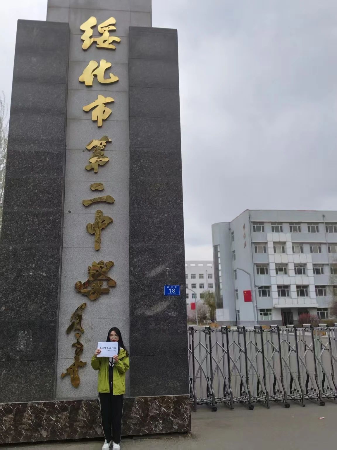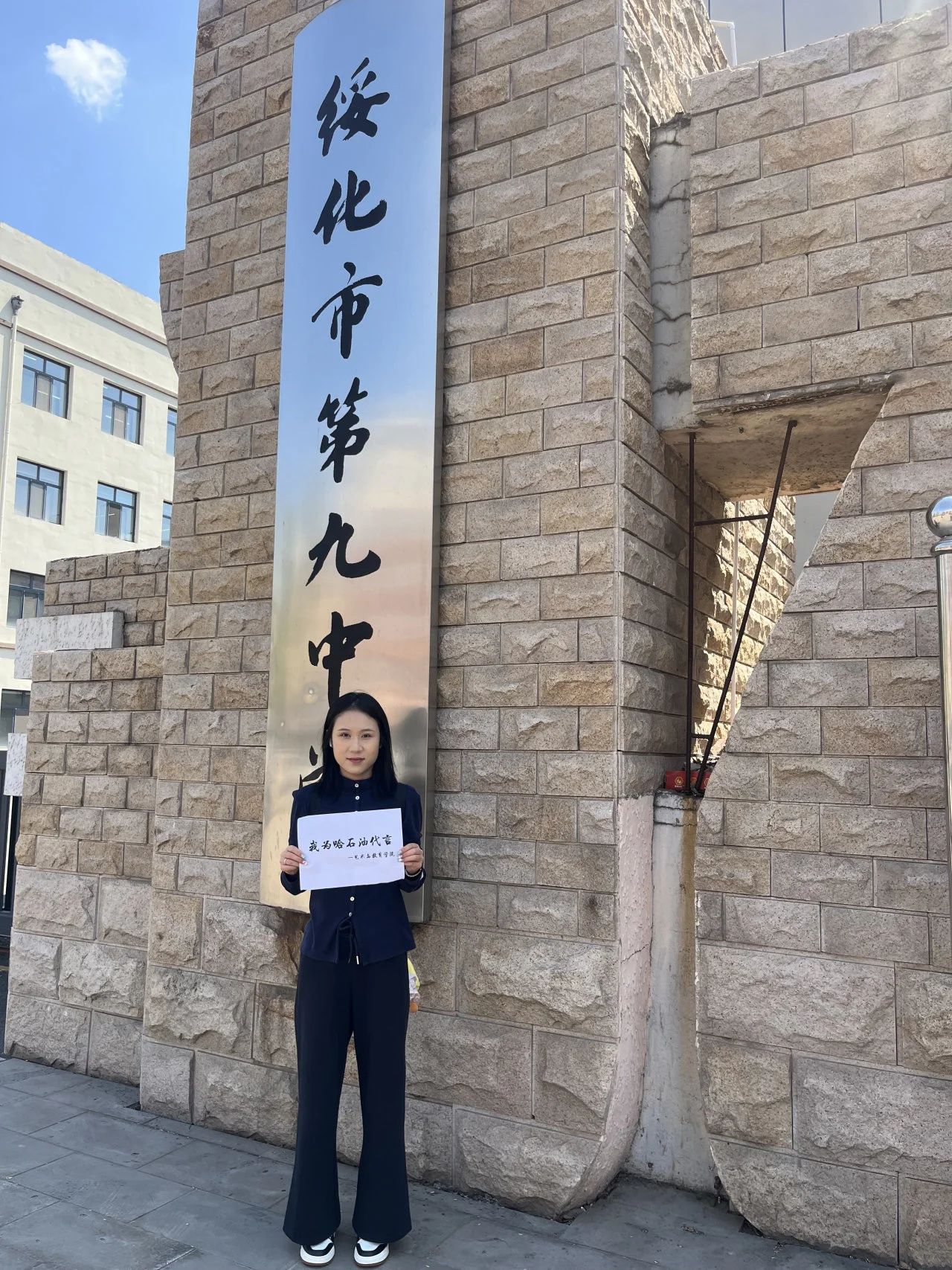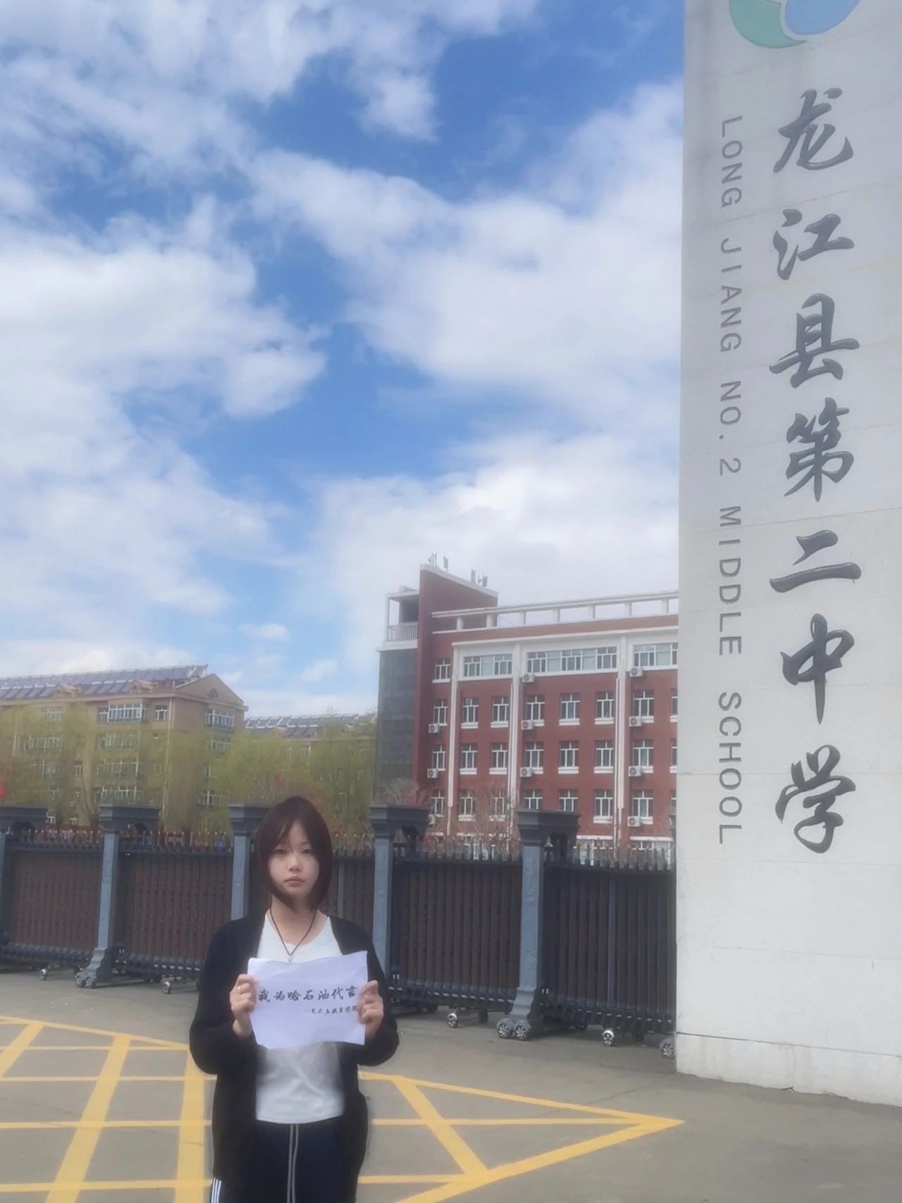 刘莹在哈尔滨市奔赛中学校(衡春高级中学)为哈石油代言