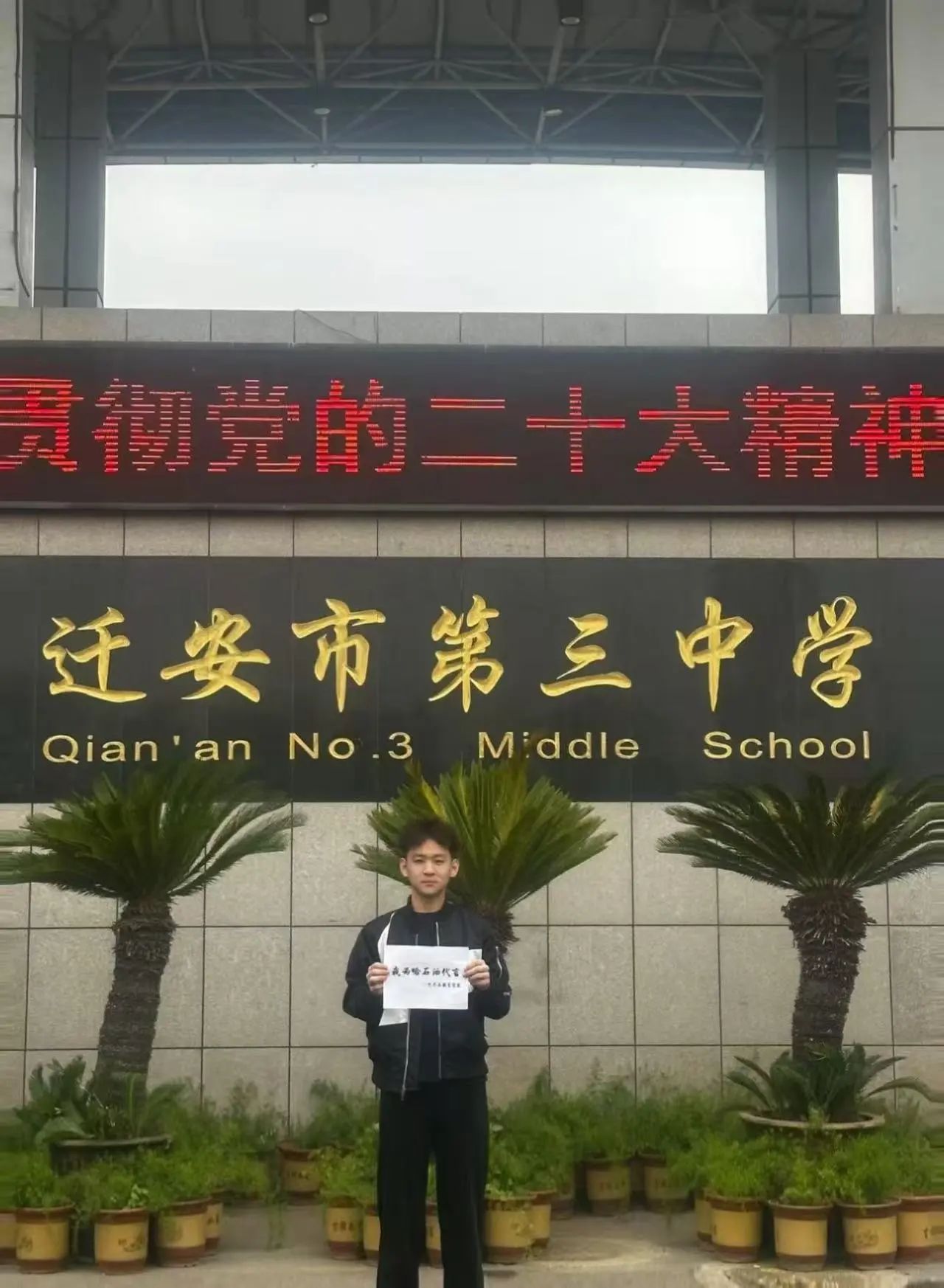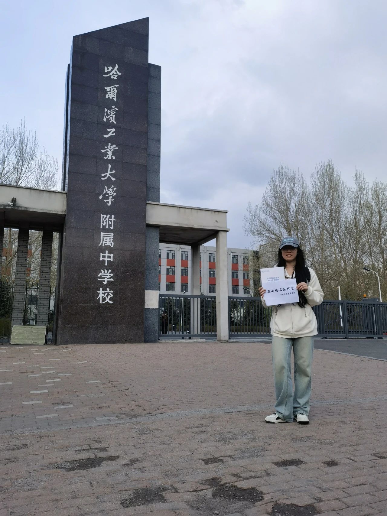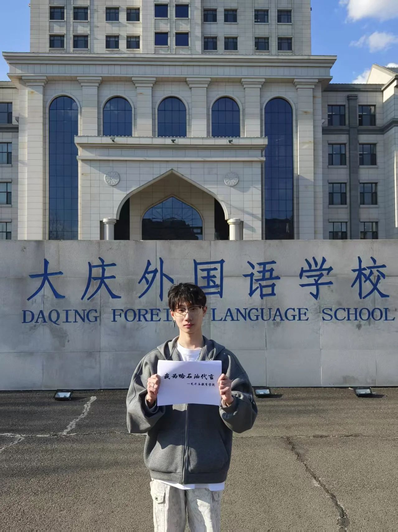 朱博文在哈尔滨工业大学附属中学为哈石油代言
