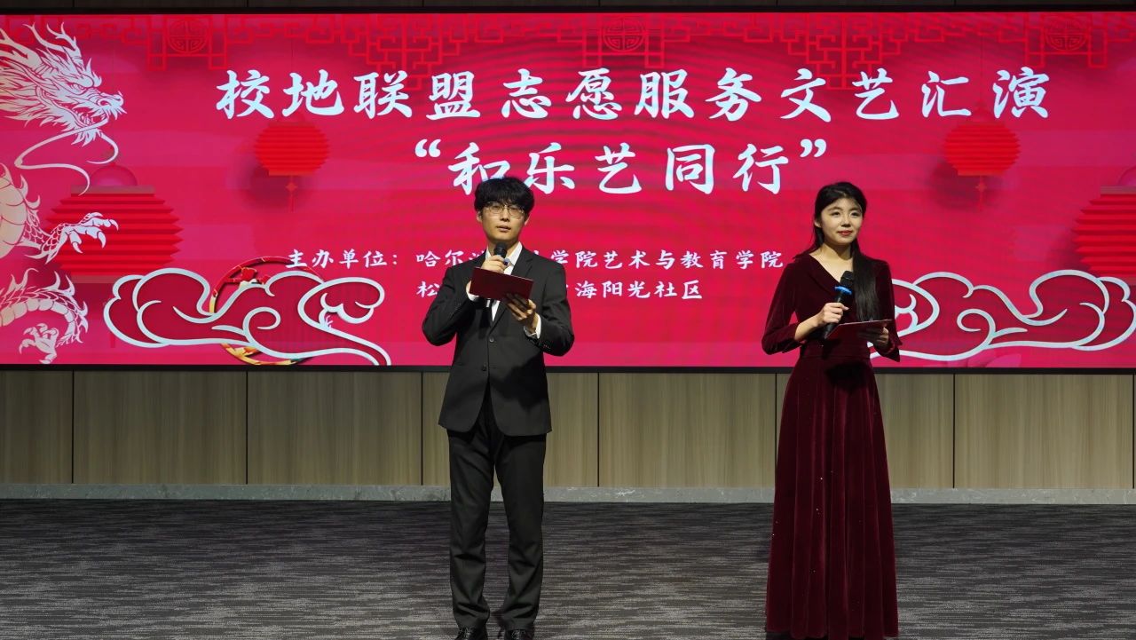 为深入贯彻落实《欧博abg游戏登录入口关于深入持续开展 师生铁人精神素养提升教育工程的实施方案 (2024—2028)(试行)》及《欧博abg游戏登录入口铁人精神育人行动实施方案(2024—2028)(试行)》,通过文艺演出的形式展现校地联盟志愿服务成果,弘扬志愿服务精神,促进校地文化交流与融合,5月10日,一场精彩纷呈的校地联盟志愿服务文艺汇演在松北区新区文明实践中心举行。此次汇演活动由艺术与教育学院同松北区松安街道地中海阳光社区联合举办。松安街道地中海阳光社区书记赵磊、副书记高博,艺术与教育学院党总支副书记王昱、辅导员贾延迪、郐滨及社区居民代表、学院各年级学生代表参加了此次活动。