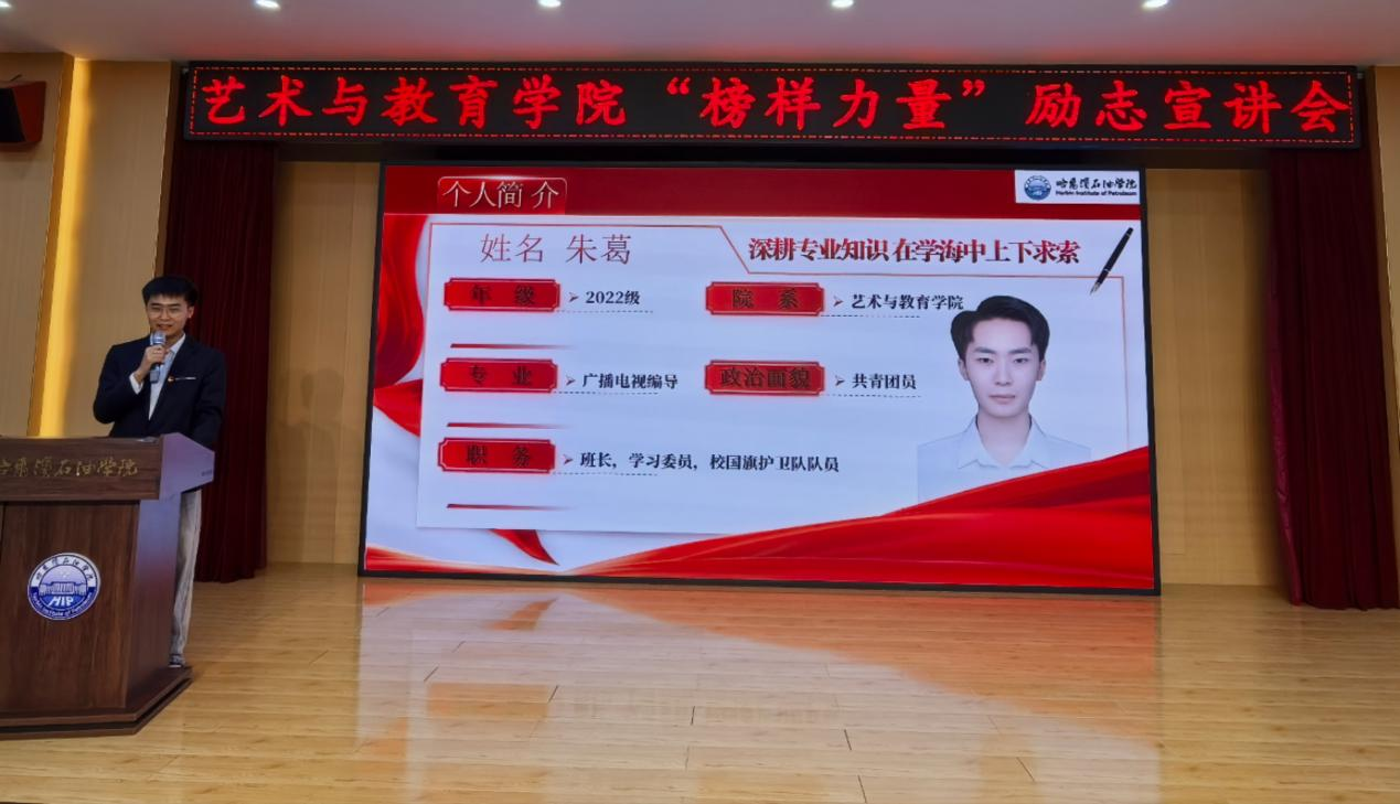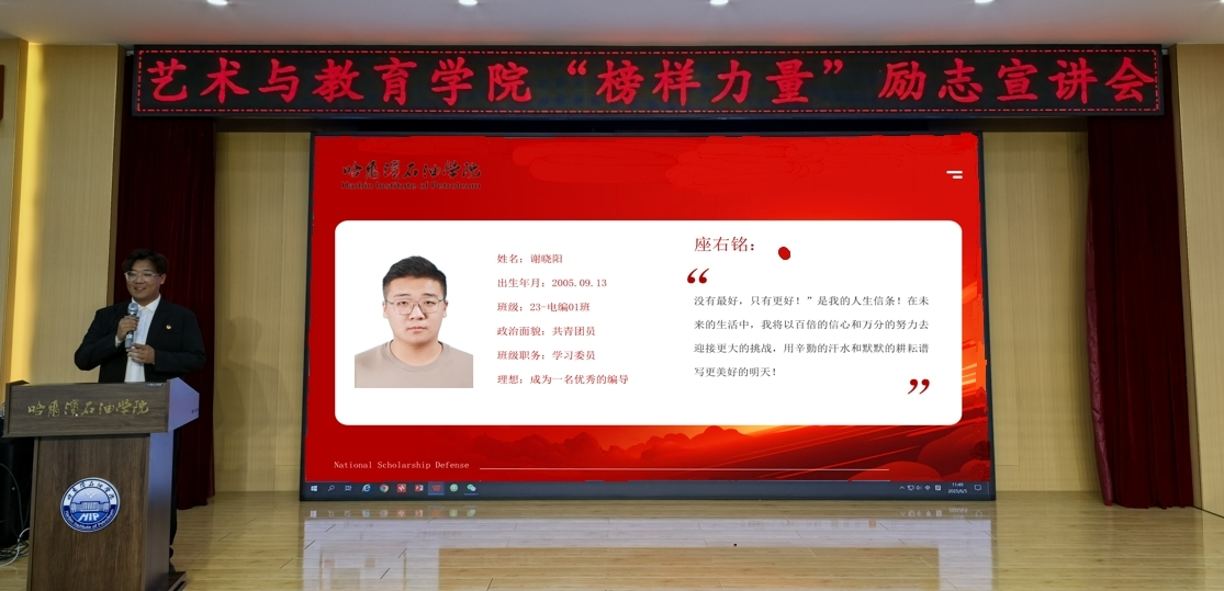 为深入践行立德树人根本任务,发挥资助育人实效,根据学工处工作通知(2025-13)《关于开展欧博abg游戏登录入口2025年资助育人主题活动的通知》要求,艺术与教育学院积极响应于2025年6月5日开展“榜样力量”励志宣讲会,活动由学院资助专员周铭老师主持,通过优秀学子分享成长历程,激励广大学子汲取奋进力量,勇担时代使命。