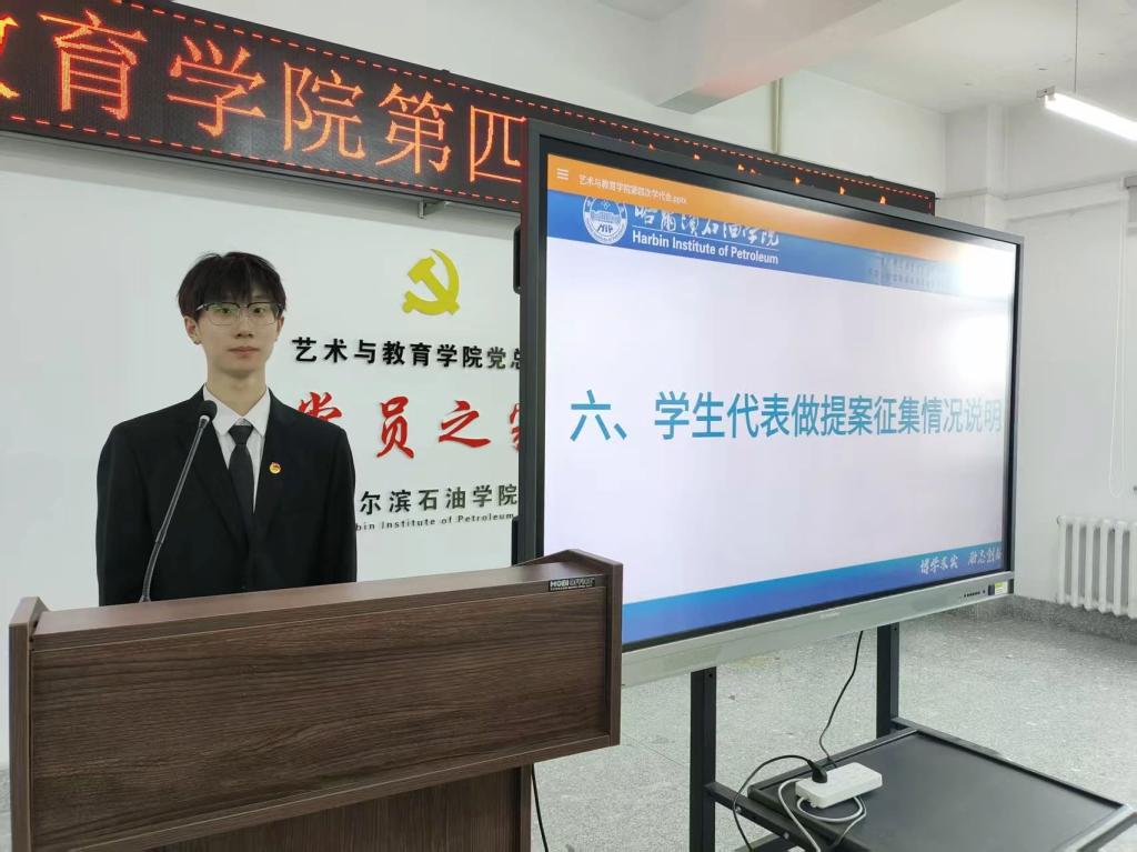 大会第四项,郭鸿博同学宣读《艺术与教育学院学生联合会章程》。
