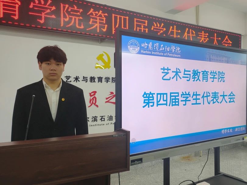 大会第二项,团总支书记王昱代表学院致开幕辞,并向第四届学生代表大会的开幕表示热烈祝贺。王昱书记在致辞中指出,学生联合会要充分发挥艺术与教育学院专业学科特色,创新活动形式,打造精品校园文化品牌。她强调,学生代表要当好桥梁纽带,积极反映同学诉求,努力把学生联合会建设成为同学们信赖、依靠的温暖家园。希望全体代表以高度的责任感和使命感,为学院发展建言献策,共同开创学生工作新局面。