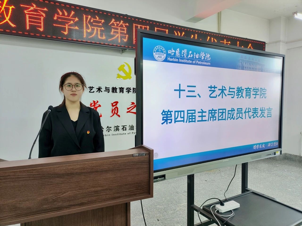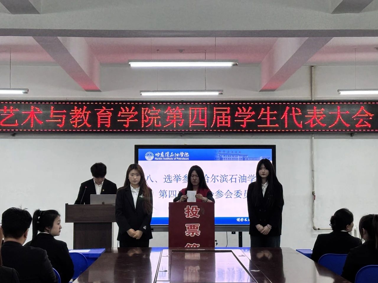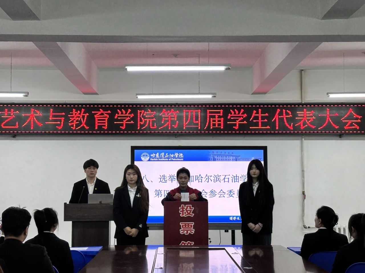 大会第七项,以无记名投票方式选举产生了艺术与教育学院第四届学生代表大会委员。