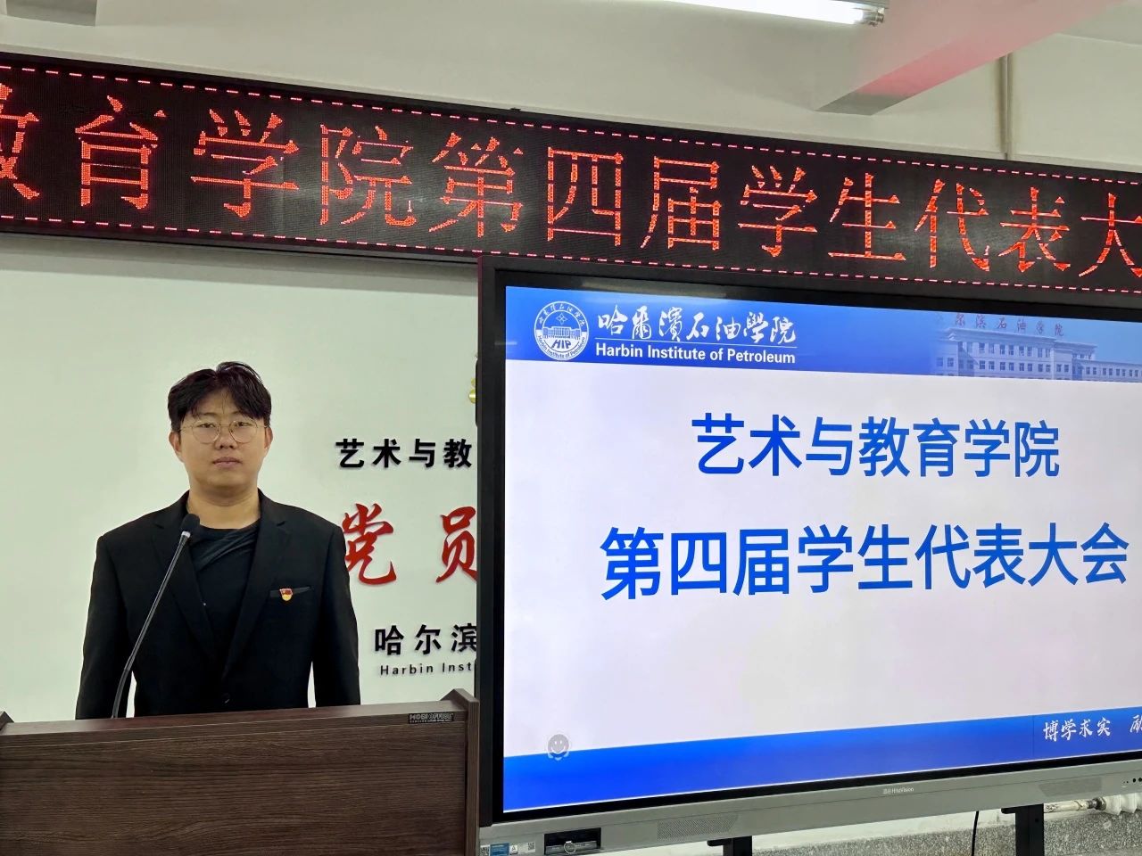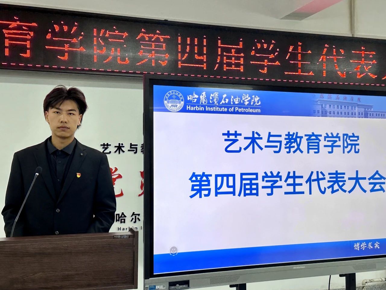 根据《欧博abg游戏登录入口学生联合会章程》、《艺术与教育学院学生联合会章程》及校学联关于同意我院组织召开第四届学生代表大会的批复意见,艺术与教育学院于2025年6月9日在艺术楼415召开了艺术与教育学院第四届学生代表大会。艺术与教育学院团总支书记王昱及60位学生代表出席了此次大会,会议由王梓源主持。
