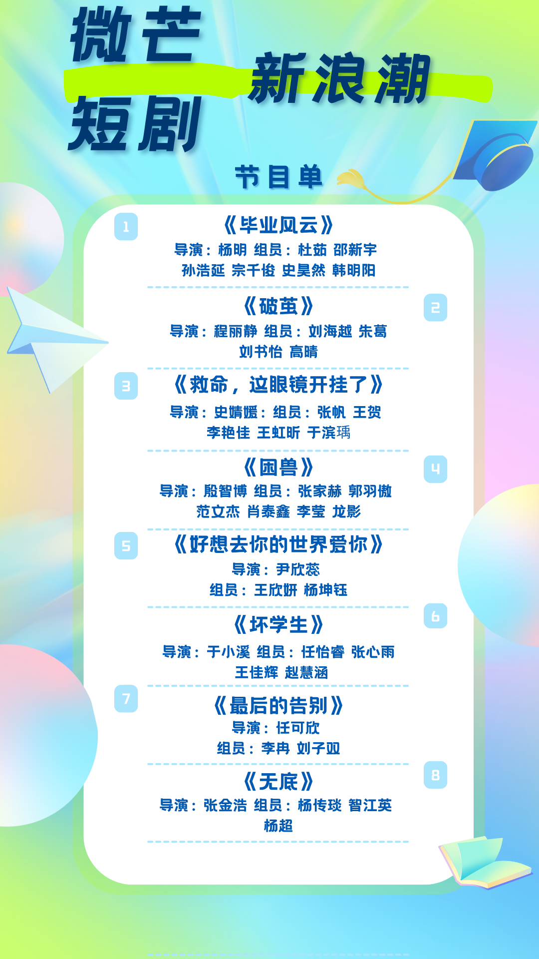 本次展映共有8部原创微短剧作品惊艳亮相,如八面棱镜般从不同维度折射出大学生创作的多元视角。从聚焦毕业季趣事,到以奇幻视角解构校园生活,每部作品都展现出扎实的专业功底与独特的艺术思考。