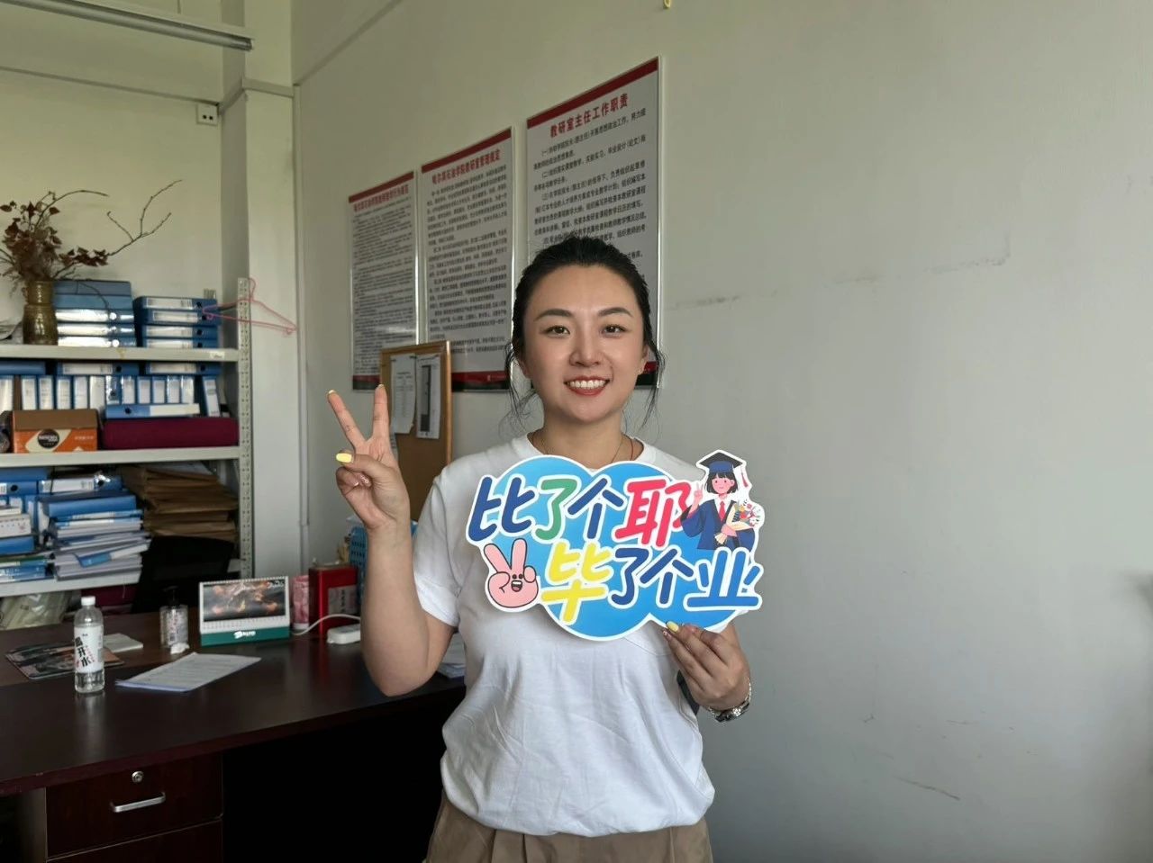 时光悄然流转。作为你们的辅导员,我见证了大家的成长舞台上你们用歌声点亮聚光灯,画室里你们用画笔勾勒梦想,教育实践中你们用爱心浇灌幼苗。你们走向更广阔的社会舞台,我希望你们永远怀揣着对艺术的热忱与对教育的敬畏。无论未来从事何种工作,都不要让生活失去了诗意与温度,不要忘记当初选择这个专业时眼中的光芒。这里永远是你们的家,这里有牵挂你们的老师,有承载着青春记忆的教室与操场。无论你们飞得多高、走得多远,我们都为你们骄傲,也永远在这里等你们分享喜悦、分担忧愁。愿你们此去一帆风顺,在各自的领域发光发热,书写属于自己的精彩人生!