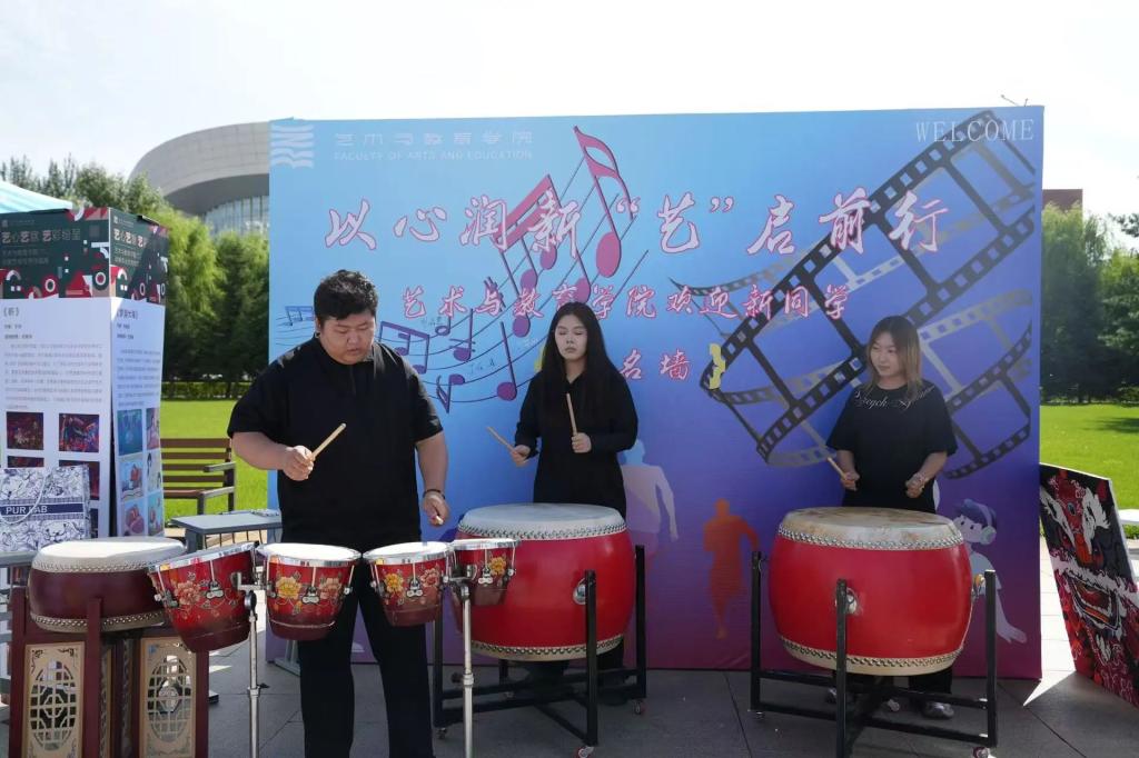 迎新现场各专业通过展板呈现学生优秀成果,音乐表演专业尹天野老师携学生以专业技艺展现教学特色,深化家长对学科发展的认知。同时,学院设立“以心润新‘艺’启前行”创意签名墙与合影区,新生与家长共同执笔书写未来期许,用镜头记录迈入大学的第一张笑脸;精心准备的“入学礼包”内含校园生活指南与学校三维展示图,既传递实用信息又承载殷切期望。