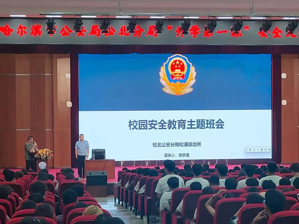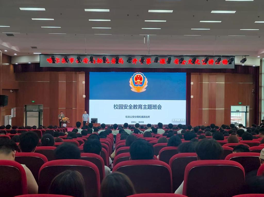 为强化新生法治观念,筑牢校园安全防线,2025年8月25日下午,艺术与教育学院在图书馆报告厅组织2025级全体新生参加学校组织的法制与消防安全入学教育讲座。讲座特邀松浦派出所民警担任主讲,围绕电信诈骗防范与校园霸凌预防两大主题展开深入讲解,为新生们送上了一堂生动的“安全第一课”。