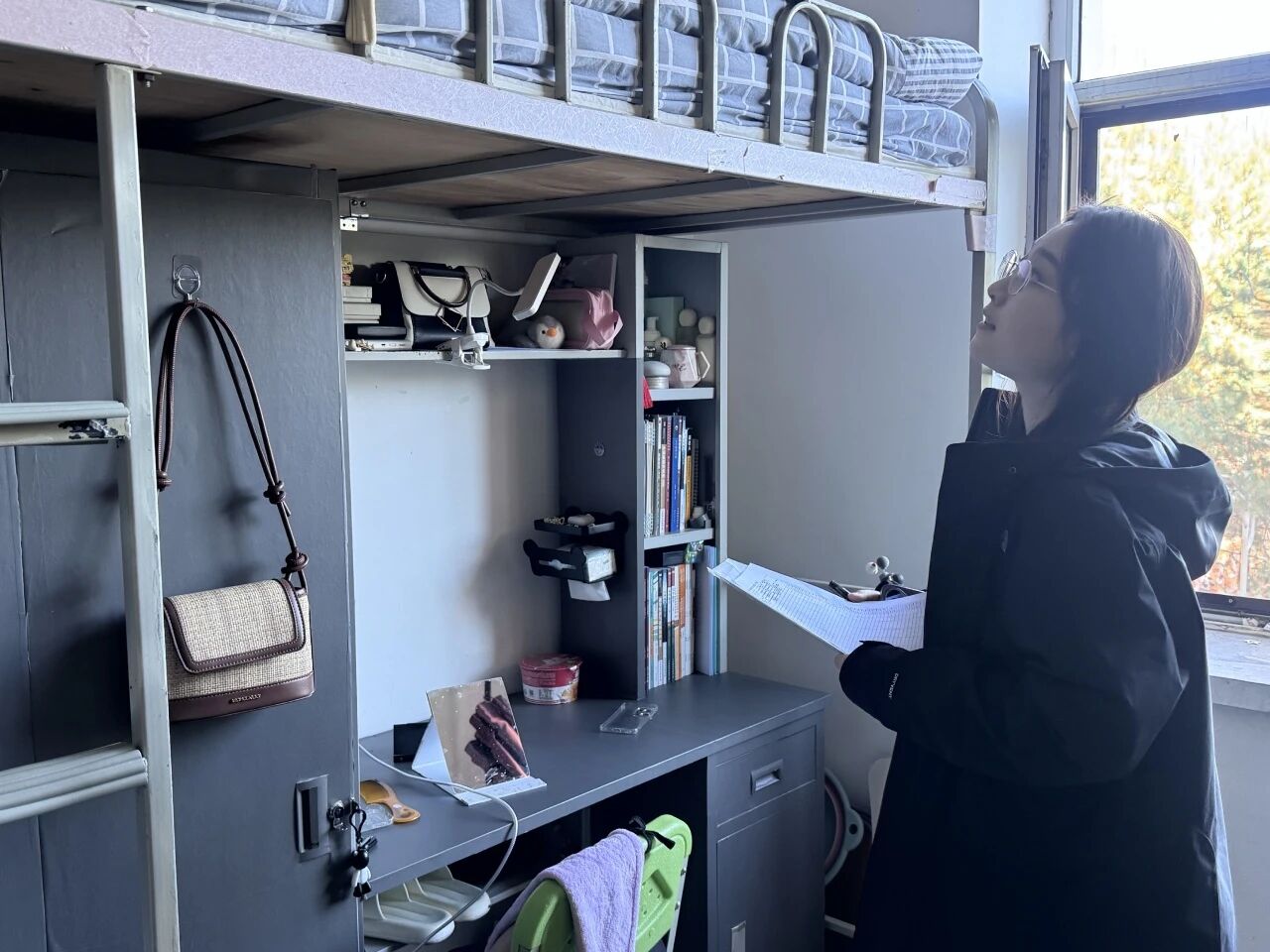 检查中,辅导员们同步推进三大重点工作:既严抓“垃圾下楼”落实,杜绝细菌滋生与异味产生,对未达标寝室现场提醒整改;也细致核查“寝室断电”情况,重点查看学生离开寝室时是否做到“人走断电”,电脑、充电器等电器电源是否关闭;同时围绕“宿舍安全”全面排查,重点查违禁电器,提醒学生关好门窗、锁闭储物柜防范财物丢失。