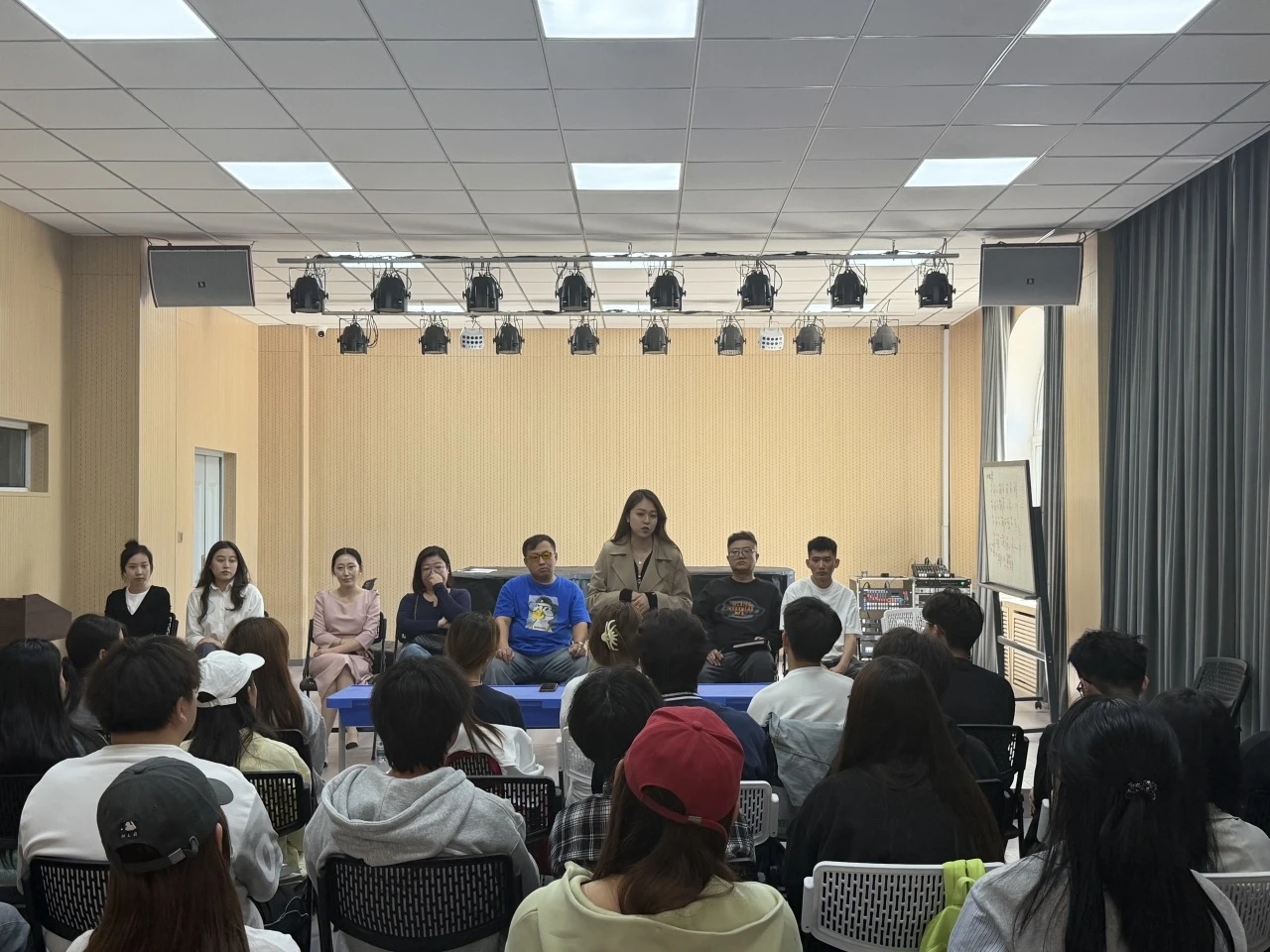 音乐表演专业系主任程晨珣代表音乐系全体教师,向新加入的同学们致以热烈欢迎,并围绕本专业的特色优势、人才培养目标及未来发展规划展开详细讲解。她特别强调,大学阶段是培养自主学习能力、独立思考能力与创新实践能力的关键时期,鼓励新生们勇敢突破自我,积极参与各类学术交流与实践活动,全面提升综合素养。随后,专业教师们依次进行自我介绍,并结合教学经验,向新生系统介绍了音乐表演专业的课程体系设置、优质师资力量配置及先进教学设施情况。老师们指出,音乐表演专业不仅要求学生具备扎实的专业技能功底,更注重培养学生良好的艺术审美修养与深厚的人文素养,学院将通过搭建丰富的实践平台、提供多元的展示机会,全力支持学生追逐艺术梦想。