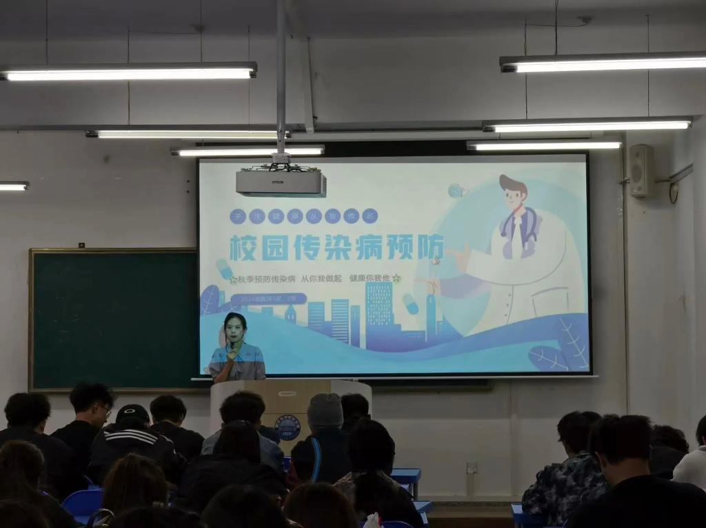 班会上,辅导员重点讲解了流感、诺如病毒感染、手足口病、水痘等秋季常见传染病的传播途径和预防措施,引导学生注意个人卫生,保持室内通风,养成勤洗手、戴口罩、不聚集的良好习惯。同时,辅导员通过真实案例提醒同学们注意饮食安全、加强体育锻炼,合理安排作息,增强自身免疫力。