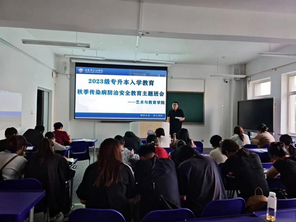 随着秋季来临,气温变化频繁,各类传染病进入高发期。为增强学生防病意识,有效预防季节性传染病的传播。2025年9月28日,艺术与教育学院各年级开展了秋季预防传染病主题班会。班会由各年级辅导员主持,全体学生参加。
