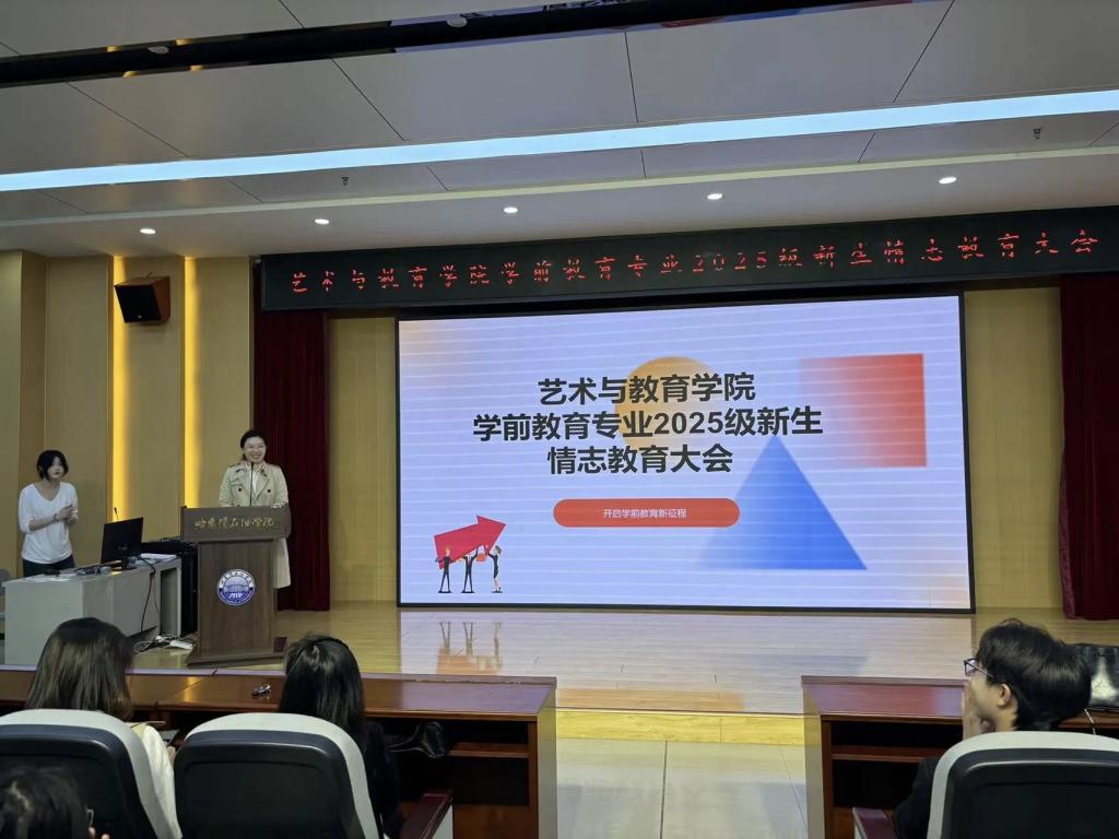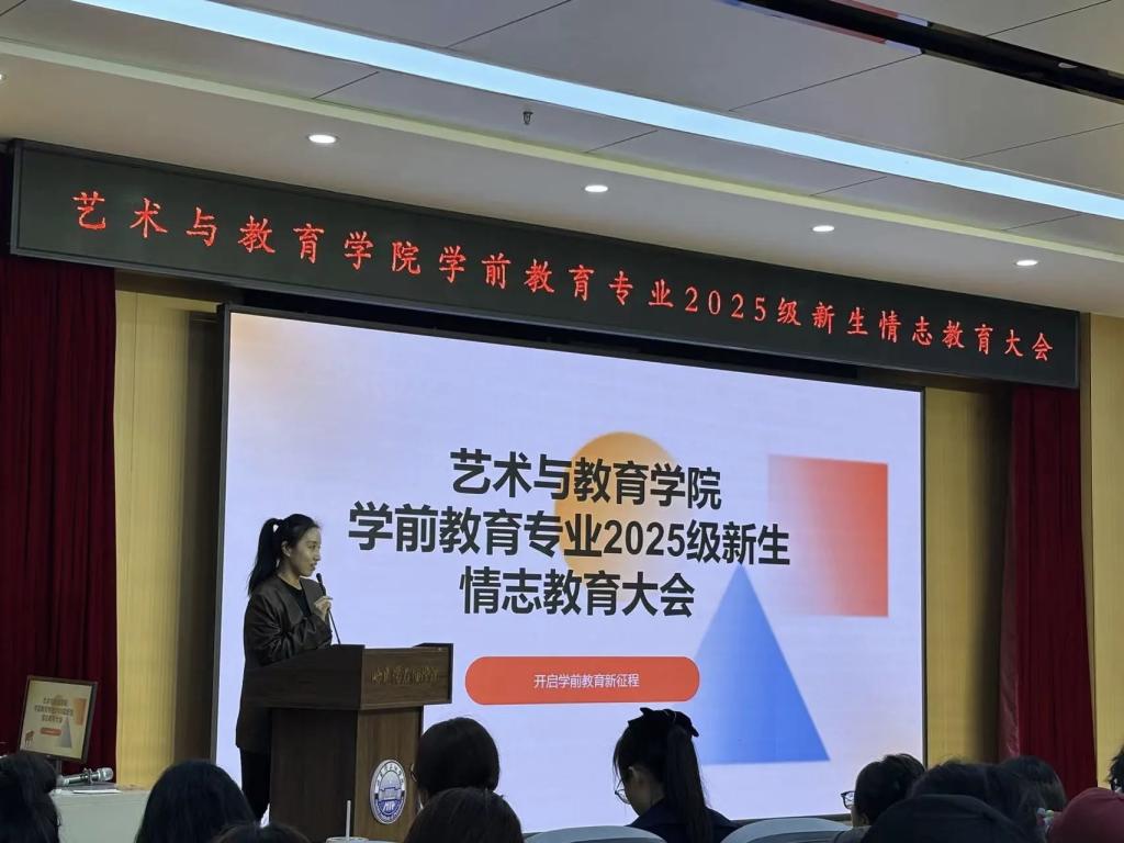 为使2025级学前教育新生深入了解学前教育专业,坚定职业信念,科学规划大学生活。2025年9月28日,艺术与教育学院在主教518会议室为学前教育专业新生举办了一场内容丰富的情志教育大会,本次大会由学前教育专业教师周雪松主持。