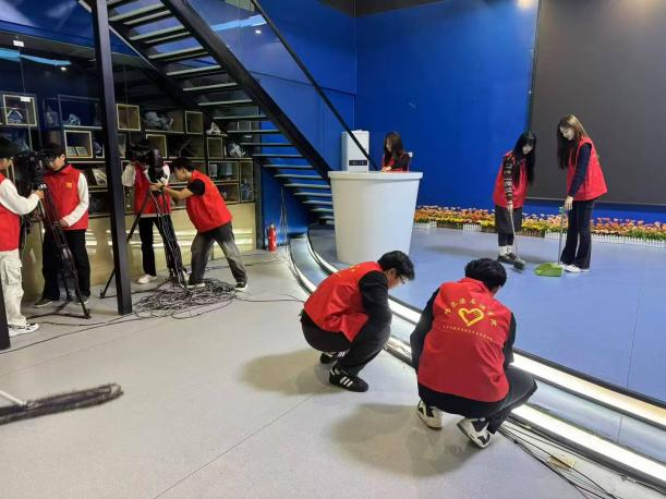 活动开始前,负责人对志愿者们进行了任务分配和安全提示,明确分工为地面清扫、座椅擦拭、设备除尘及垃圾整理。志愿者们迅速投入工作,手持扫帚、抹布、垃圾袋等工具,不放过任何一个卫生死角。大家互相配合、干劲十足,经过近两个小时的努力,演播厅的地面焕然一新,座椅整洁有序,设备光亮如新。