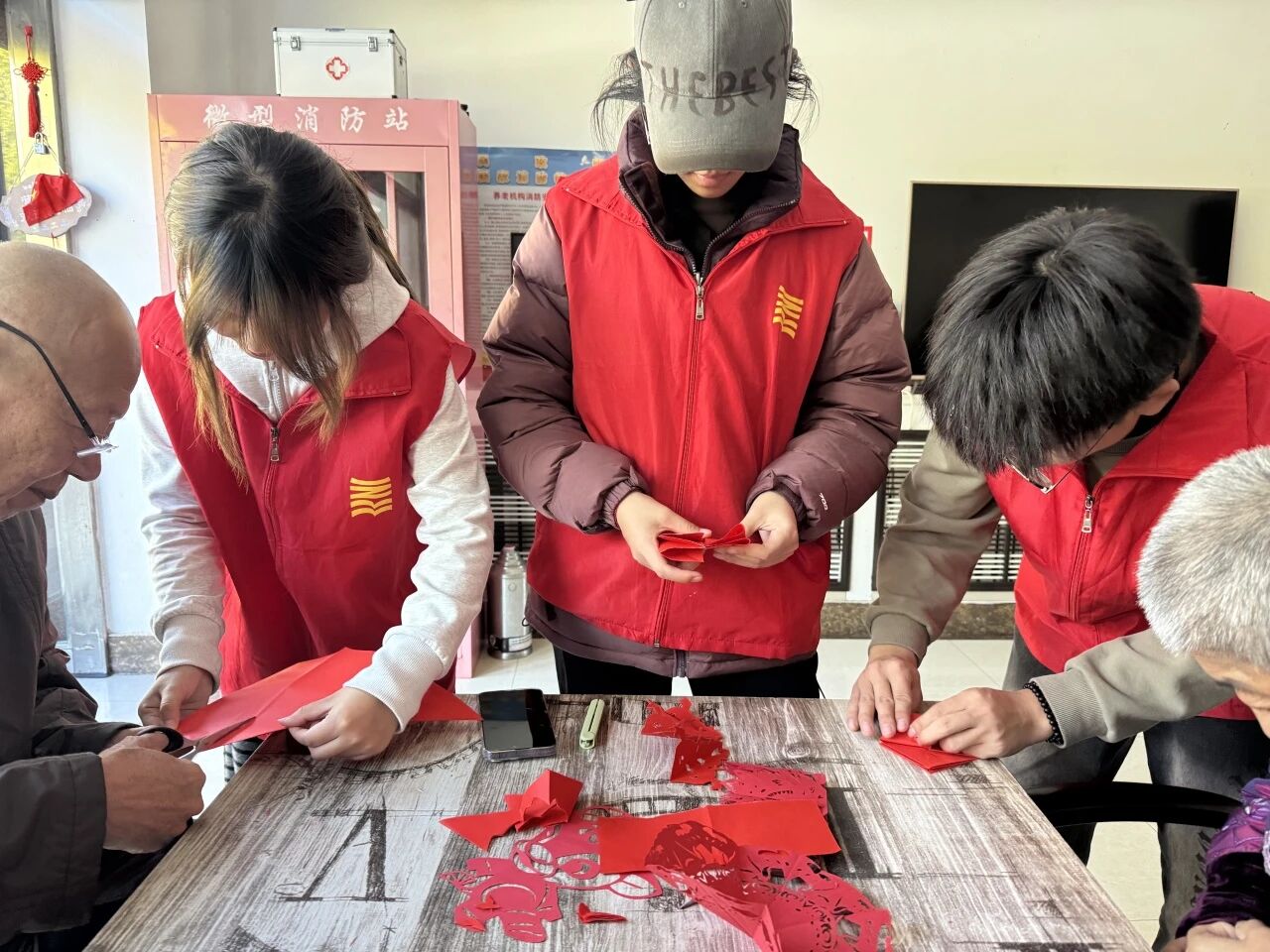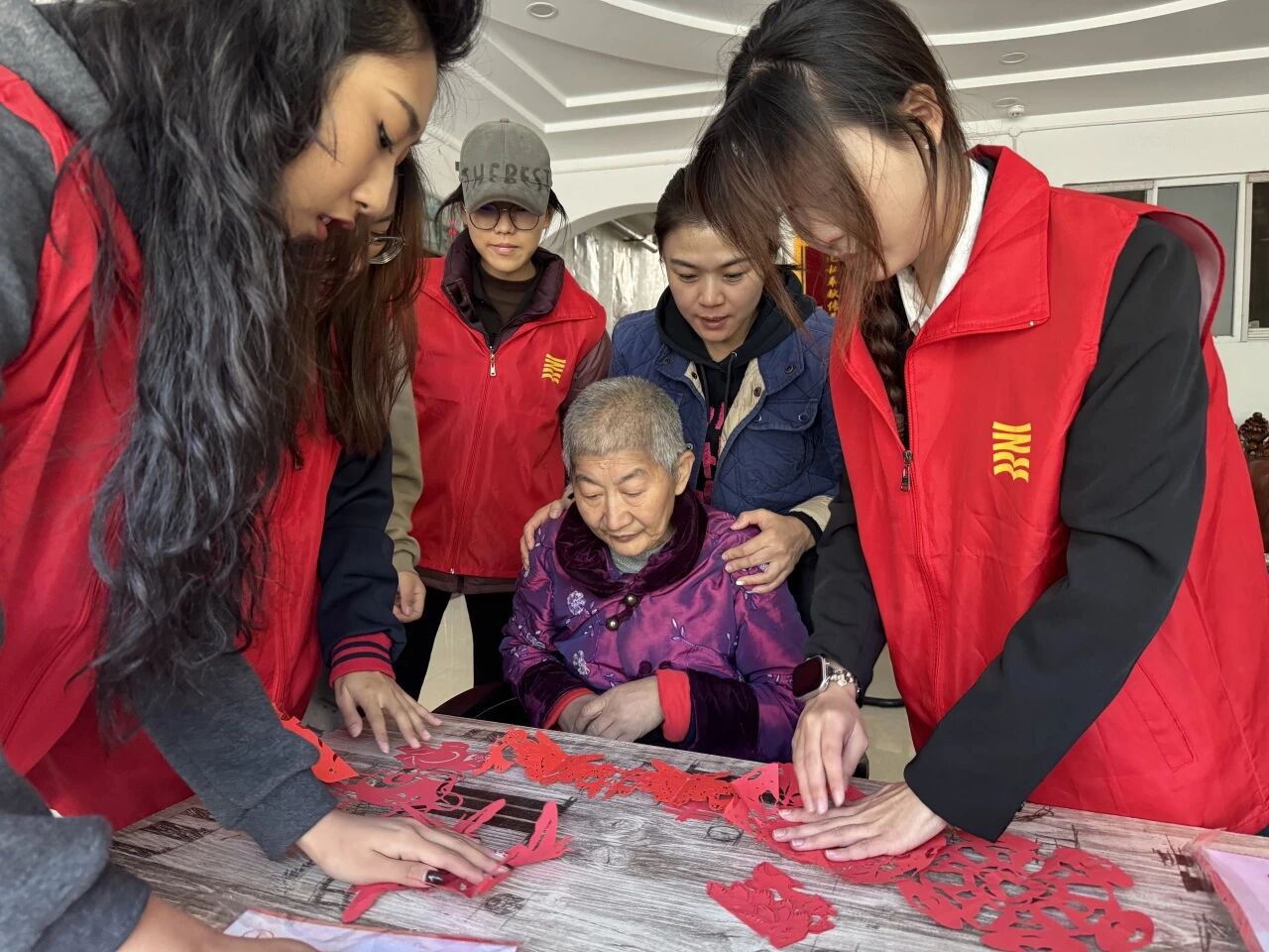 为深入学习贯彻习近平新时代中国特色社会主义思想,不断增强老年人的获得感、幸福感、安全感,艺术与教育学院青年志愿者协会“艺”启同行志愿服务队于2025年10月21日走进福邸养老院,开展“指尖剪纸传温情,围坐闲谈暖夕阳”金晖行动主题志愿服务活动,用实际行动为老人们送去关心。