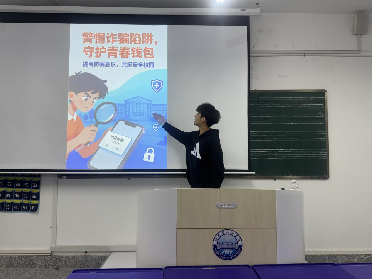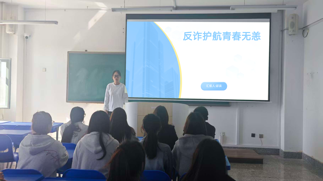 主题教育期间,各年级辅导员结合专业年级班级特点,围绕大学生群体高发的电信网络诈骗类型展开针对性讲解,重点剖析了冒充客服、虚假交易、刷单返利、校园贷、求职陷阱及“AI换脸”“共享屏幕”等新型诈骗手段。各年级同学还制作反诈海报,然后讲解和展示。班会特别强调“三不一多”防诈原则——不轻信、不透露、不转账、多核实,并通过真实案例警示、互动问答、宣传视频等多种形式,引导学生树牢安全底线思维。