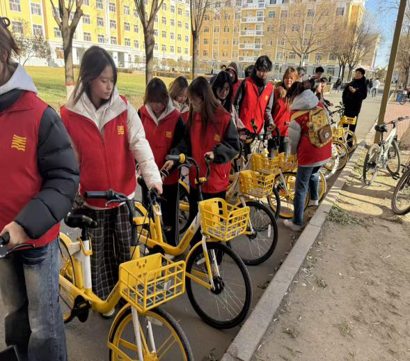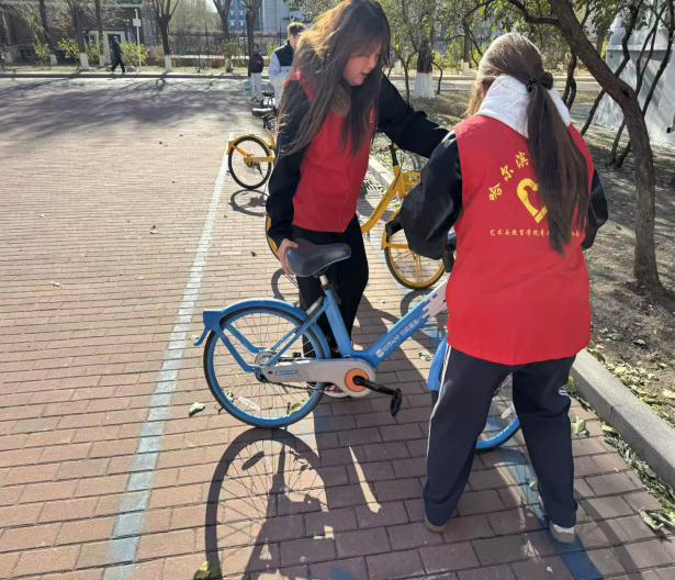 为响应校园文明建设号召,解决共享单车乱停乱放影响交通的问题,艺术与教育学院青年志愿者协会“艺”启同行志愿服务队于2025年11月11日组织开展“规范停放,文明出行”共享单车志愿整理活动,用实际行动为师生营造整洁有序的校园环境。
