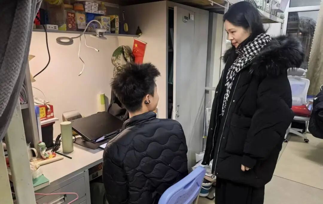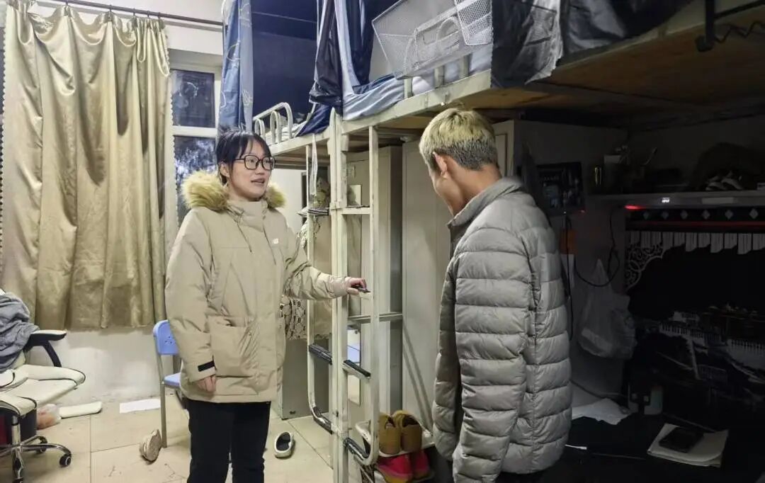 辅导员们逐一对各年级学生寝室进行走访,细致核实每一名学生在寝情况,对未在寝室的学生,通过电话联系掌握其行程与安全状态,确保安全管理无死角、无盲区。辅导员同步开展冬季安全宣传,结合低温天气、夜间出行风险等实际,向学生讲解防寒防滑、寝室用电规范等内容,并询问期末备考进度、生活状况,对学生提出的困惑等进行一一解答,将检查的“严标准”与服务的“暖温度”同步落地。