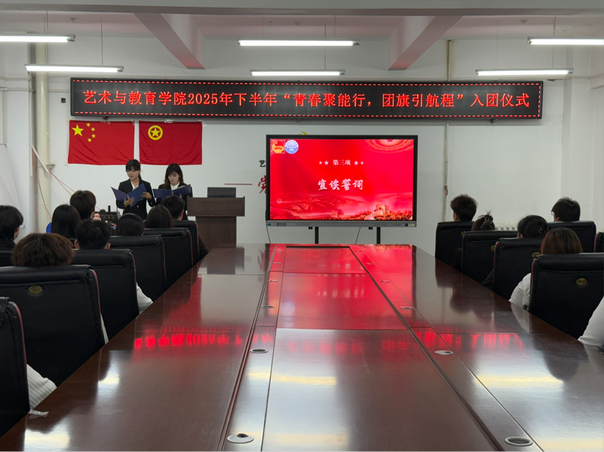 为了深入学习贯彻习近平总书记关于青年工作的重要思想,强化青年学生理想信念教育,2025年12月11日,艺术与教育学院团总支于415会议室隆重举办“青春聚能行,团旗引航程”2025年新团员入团仪式。此次仪式既是共青团组织建设的重要举措,也是为团组织注入新鲜血液、激发青年担当精神的生动实践。