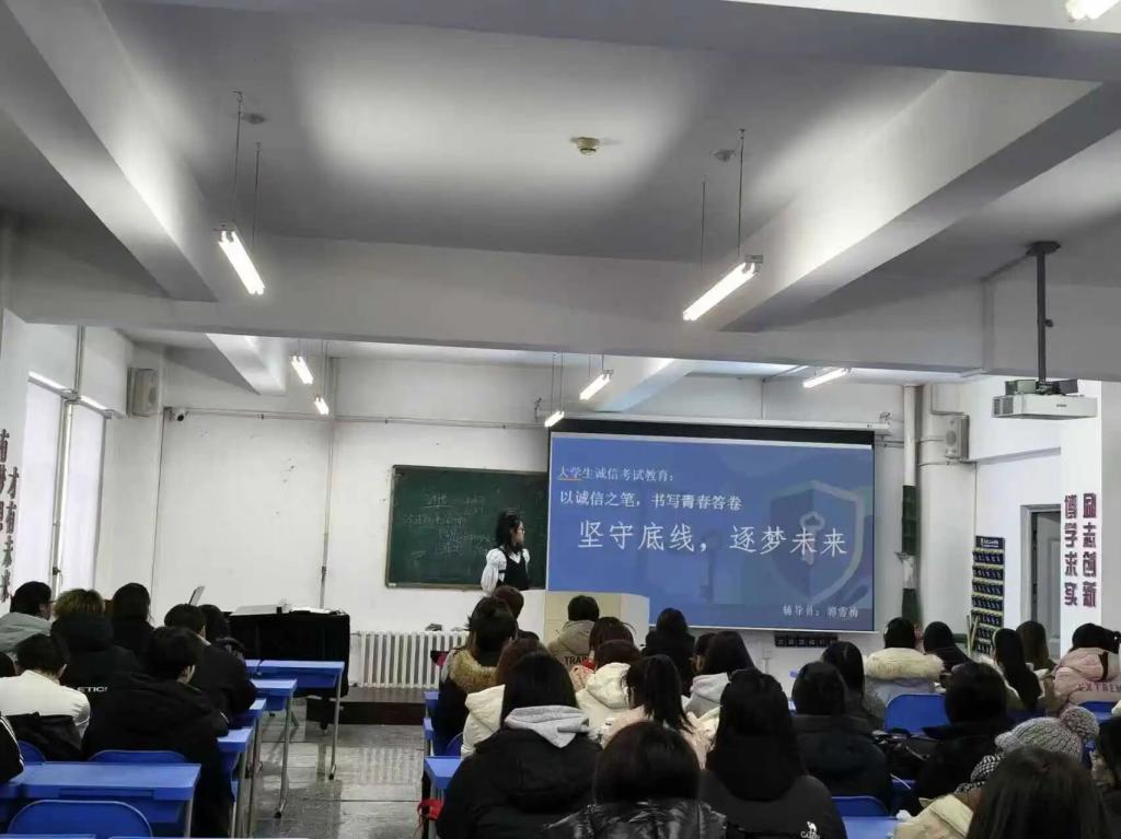 在各年级大会上,辅导员们着重阐述了严肃考纪、诚信应考的重要性,结合近年考试违纪作弊典型案例,深入剖析违规行为对个人的影响,以“身边事”警醒“身边人”,明确指出遵守考试纪律是大学生义不容辞的责任与底线。辅导员要求全体同学从思想上高度重视,端正学习与考试态度,自觉抵制任何违规违纪行为,以真实水平接受检验。同时,辅导员也提醒同学们合理规划复习进度,调整应考心态,并要求党员、学生干部挂牌考试,带动身边同学共同营造清正严明的考试氛围。在考试过程中尊重监考教师,做到文明考风,诚信考试,自觉遵守考场纪律。组织全体同学签署《诚信考试承诺书》,同学们纷纷表示将严格遵守考试纪律,科学规划复习时间,以扎实的知识储备、诚信的应考态度展现同学们“言行一致、表里如一”的优良风貌,用真实成绩为学期学习交上合格答卷。