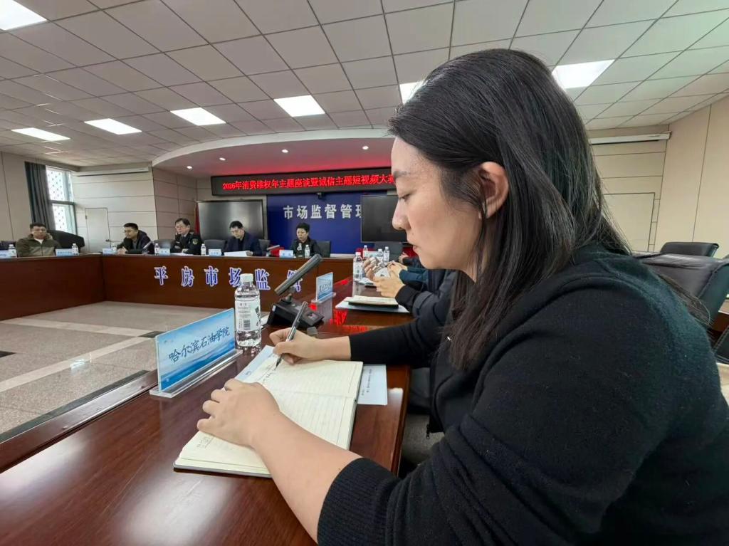 为深化校地合作,推动数字媒体艺术专业教学实践与地方经济发展需求紧密结合,2026年3月12日,平房区(哈经开区)市场监督管理局联合黑龙江省诚信建设促进会召开了2026年“提升消费品质”消费维权年主题座谈暨“诚信力量·赋能未来”短视频大赛动员会议。我院数字媒体艺术专业系主任李莹、骨干教师王皓作为在哈高校代表应邀出席会议,并与政府部门、行业协会、市场主体及广告传媒单位代表共话诚信建设,为大赛方案与品牌推广协同路径建言献策。