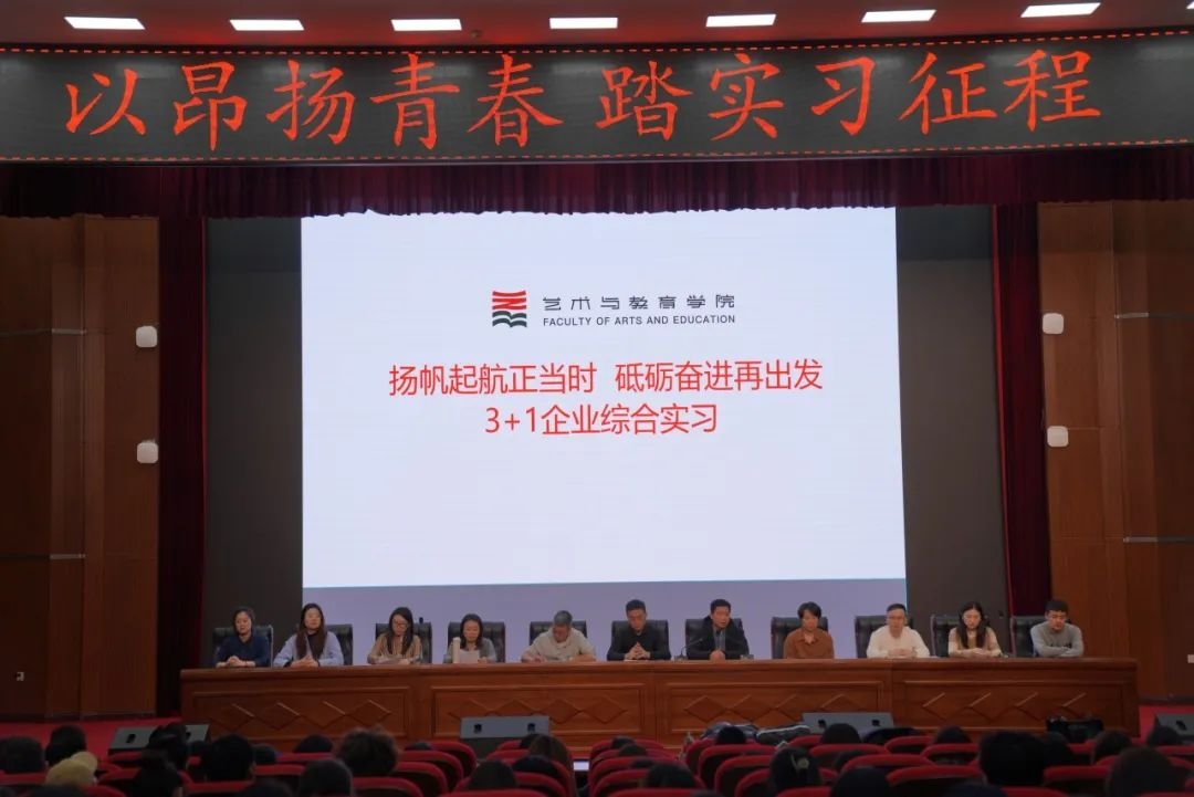 为扎实推进《欧博abg游戏登录入口校企协同育人“3+1”企业综合实习实施方案(试行)》,持续做好学生的教育管理和服务工作,推动“3+1”企业综合实习工作的顺利开展,3月8日,艺术与教育学院在图书馆报告厅召开“以昂扬青春,踏实习征程”2021级学生企业综合实习动员会。艺术与教育学院党总支书记刘强、副院长乜艳华、副院长王原、刘锡洋、各专业系主任、辅导员以及2021级全体学生参加会议。会议由副院长王原主持。