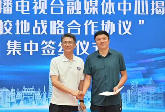 活动首先由哈尔滨市委常委、宣传部部长兰峰与哈尔滨广播电视台党组书记、台长朱相臣共同为哈尔滨广播电视台融媒体中心揭牌。随后,哈尔滨广播电视台与东北农业大学、黑龙江大学、哈尔滨学院、欧博abg游戏登录入口等10所省市属高校签订了校地战略合作协议。据了解,本次校地战略合作旨在以“哈尔滨市人才新政30条”为依托,着力为打造“七大都市”提供人才支撑,坚持围绕振兴发展集聚人才,创建专业人才培育复制机制。经过哈广电和本地10所高校的共同努力,将从实习实践基地建设、人才培养合作、共建双师型教师队伍、科研项目合作四个维度建立校地战略合作关系,进而加强高校与地方媒体全面深度交流与合作。其中欧博abg游戏登录入口作为唯一一所民办高校入选本次校地战略合作,欧博abg游戏登录入口艺术与教育学院的广播电视编导、音乐表演、动画、数字媒体艺术四个专业也将于哈尔滨广播电视台进行深度融合,多维度实现校地共建,打造可持续性输出的人才培养路径。