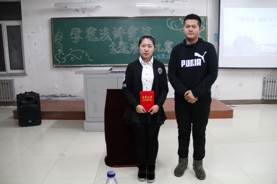 伴随着主持人对法律的介绍,整个活动缓缓地拉开了帷幕。参加此次演讲比赛的七位选手皆是准备充分,他们精神饱满,声情并茂,把自己对宪法的理解很好的融入到他们激情四射的演讲中。选手们极富感染力的精彩表现,打动了评委和在场的观众,不时博得现场阵阵掌声。一个个精彩演讲无不衬托着学子们对法的理解。《与宪法同行》、《以法为教》等演讲更是他们宣传法律、知法守法的誓言。而幽默的相声《学好法律力量大》更是将整个活动推向了高潮。伴着法律知识的熏陶,整个活动也即将结束。