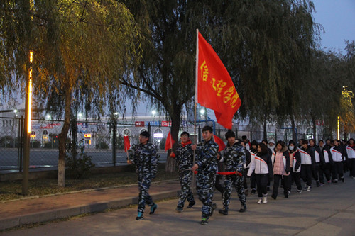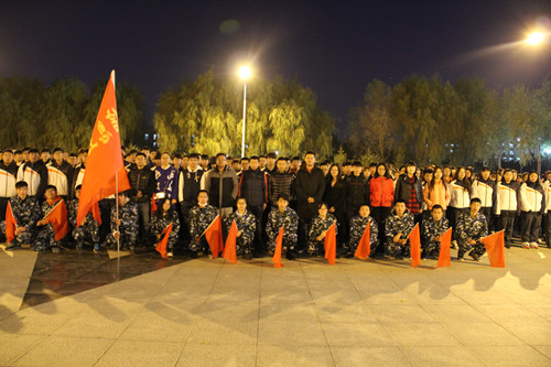 首先由信息工程学院党总支副书记苏永彬老师进行讲话,他指出希望全体同学通过此次活动能够磨练意志品质,明确自己作为大学生的历史责任;伴随着苏永彬老师的讲话长征开始了。整装待发的同学们从体育场出发走向足球场,让同学们了解过雪山草地的艰辛,期间更有“十人十一足”的游戏,同学们互相挽手走过终点,仿佛体会到了当年红军战士一起搀扶走过草地的艰辛。随后又经过了“遵义会议”、“飞夺泸定桥”、“四渡赤水环节”。在这期间同学们唱起《团结就是力量》,尽管天气寒冷,但同学们始终热情高涨,用坚定整齐的步伐传承着长征精神。伴随着大会师双方代表握手的结束,整个活动落下帷幕。