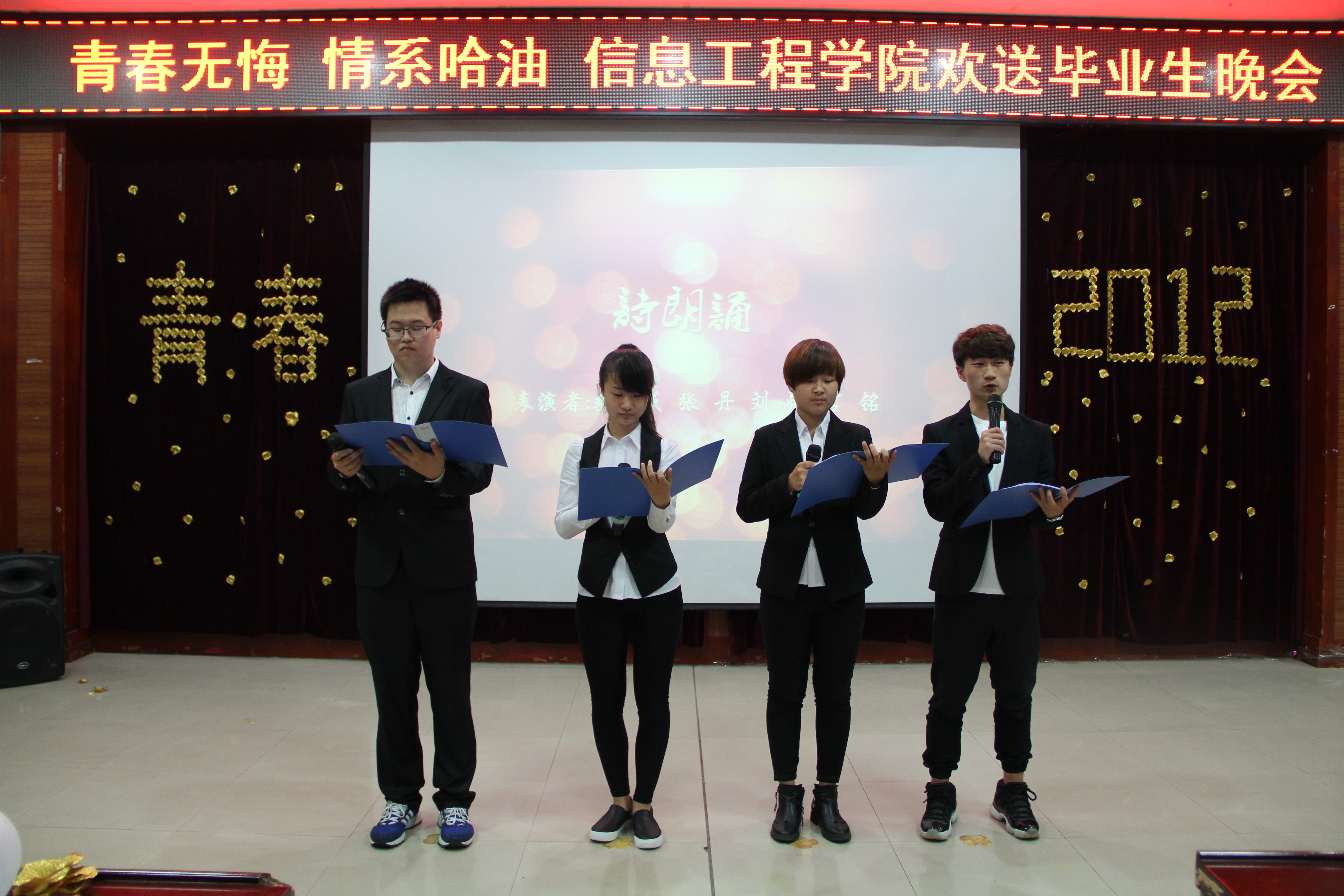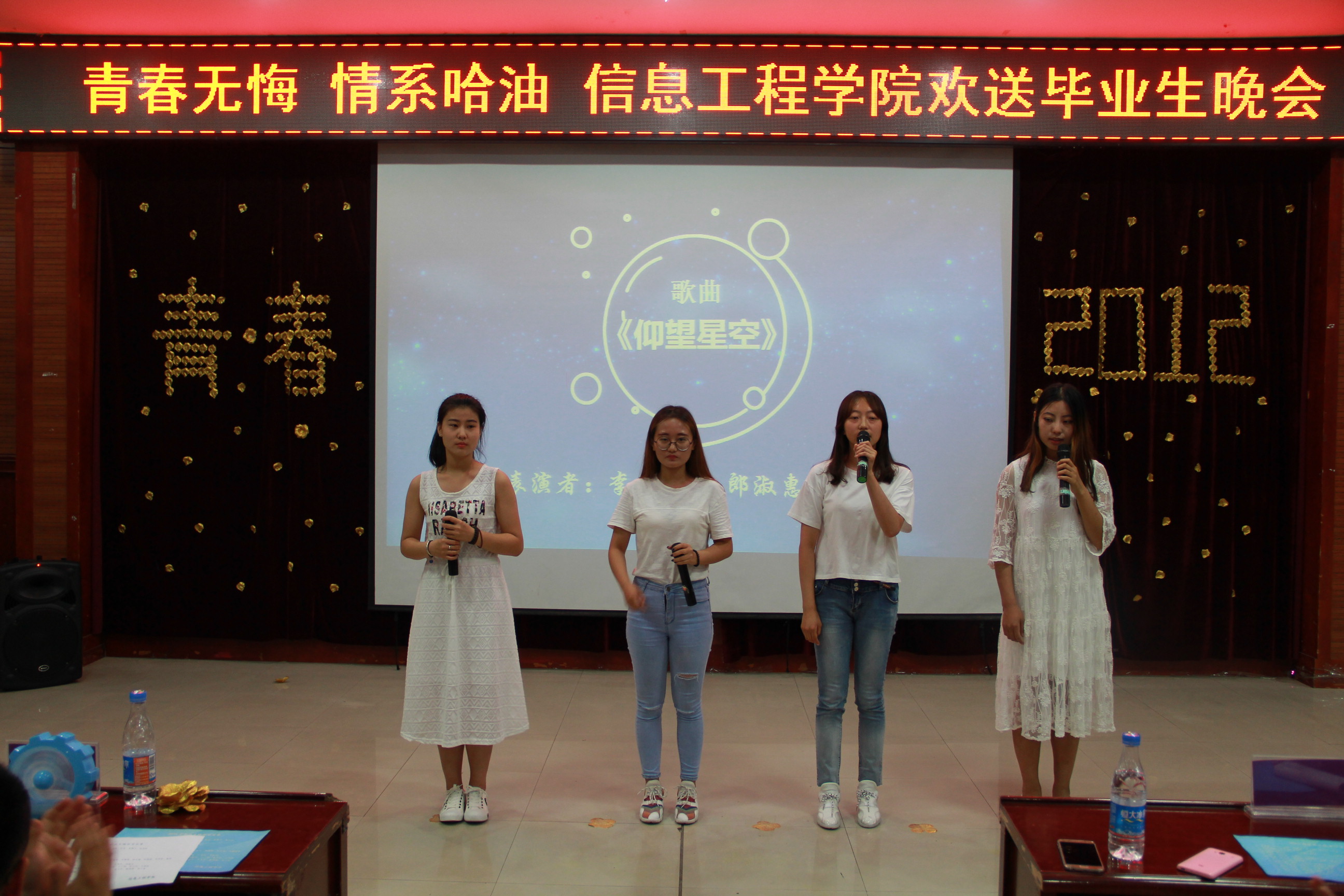 歌声逝去,前程始于足下。随着一段回忆VCR的播放晚会落下了帷幕。现在的离别不是结束而是新的开始。大学的生活即将逝去,即将迈进社会的未来之路。以后生活可能充满磕磕碰碰但信息工程学院永远是你们的避风港。信息工程学院祝全体毕业生事业有成,前程似锦。