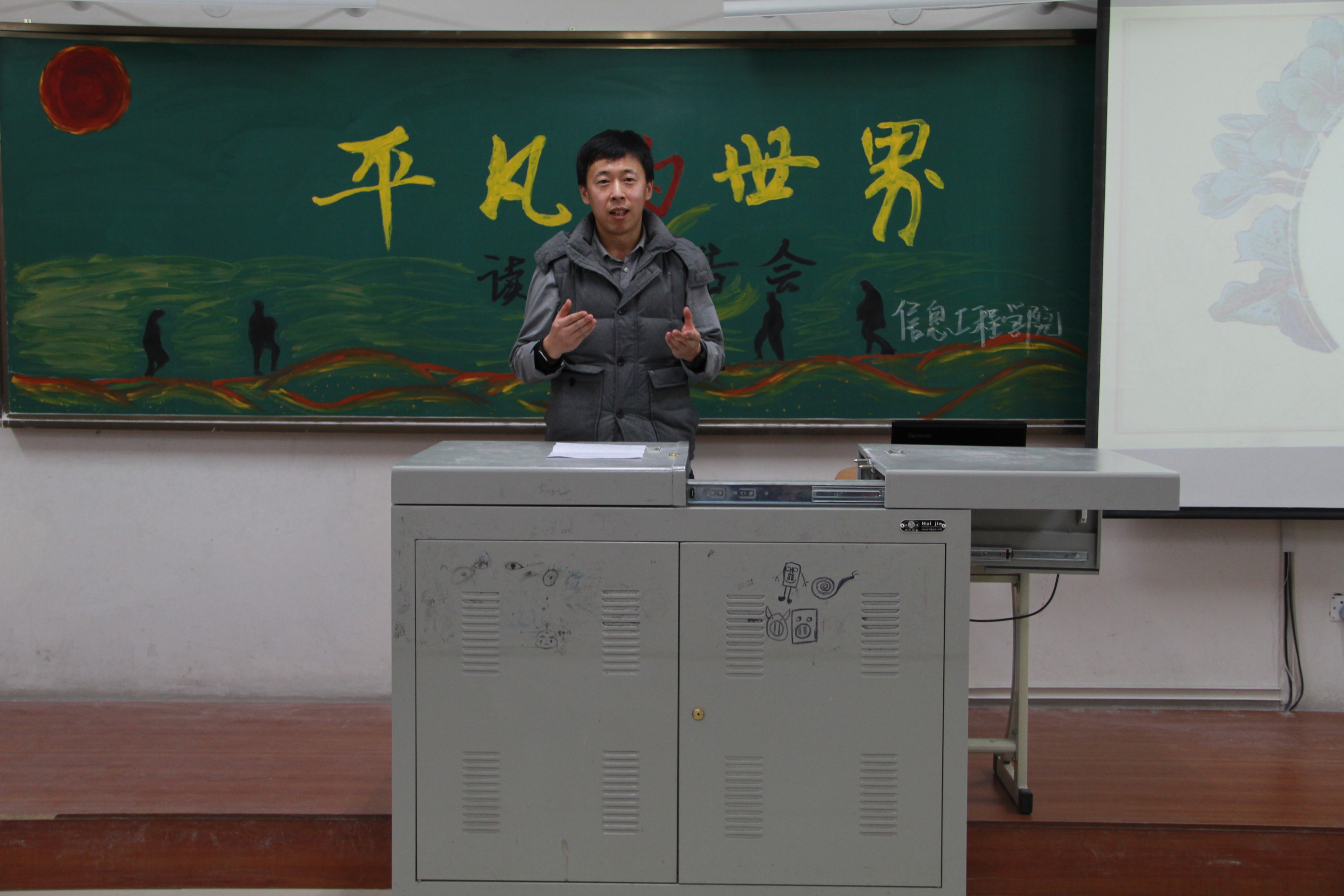 一部作品会照亮你的人生,一个人的精神会成为你的信仰。这就是路遥和他的《平凡的世界》。信息工程学院党总支副书记苏永彬老师为所有学生干部们布置了一个有意义的寒假作业,观看《平凡的世界》。并于2016年3月10日在第二教学楼407开展了《平凡的世界》读书报告会。