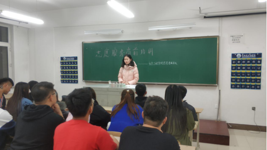 为加强我院志愿者队伍建设,进一步提升志愿者的服务水平,信息工程学院志愿者岗前培训于11月25日晚8点在二教403教室展开。此次培训由信息工程学院青年志愿者服务队负责。
