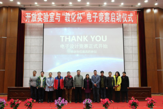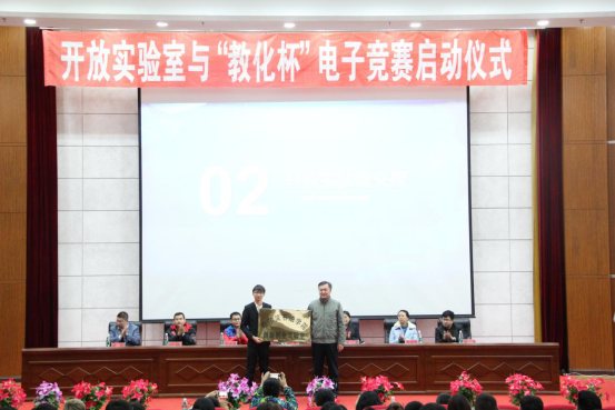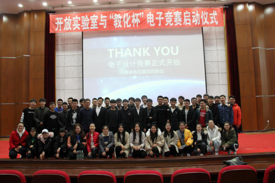 在实验室宣传部一段精心准备的开场视频后,由信息工程学院院长胡文教授与实验室主席赵雪松进行揭牌仪式,并由胡文教授进行讲话,对信息工程学院实验室未来的前景进行了规划,对大一新生,及大二大三老生提出具体的要求与希望。在交接完成后由赵雪崧介绍本次电子设计大赛的相关内容。并正式宣布,电子设计竞赛正式开始。