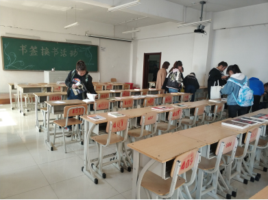 历时一周的书签换书活动于4月9日中午12点正式开始,同学们将自己读过的好书,捐献出来,就可以获得一张“换书书签”,每天中午轮流一个专业的同学们,两个班级的同学们用书签可以交换到自己喜欢的图书,有百余本图书可供同学们挑选。此次书签换书活动的书籍涉及经典著作、历史地理、文化教育、生活休闲、杂志期刊等,书籍类型十分齐全。同学们也相互推荐自己曾看过的好书,整个场面其乐融融。本次活动目的在于让更多的学生与书为友,培养学生养成良好的读书习惯。