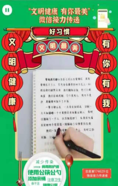 为深入贯彻习近平总书记关于坚决制止餐饮浪费行为、切实培养节约习惯的重要指示精神,加强群众性精神文明建设的创新载体,推动移风易俗、弘扬时代新精神文明建设的创新载体,推动移风易俗、弘扬时代新风的具体实践。在2021年春节来临之际,为落实欧博abg游戏登录入口党委宣传统战部工作部署,信息工程学院党总支组织全体师生积极主动参与到“文明健康 有你最美”微信接力传递活动中来,用自己的实际行动去传递每一份祝福。