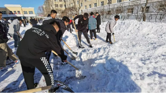 扫雪过程中,各位同学不畏严寒,挥舞着扫把、扫把等除雪工具。大家齐心协力,配合默契,忙碌的身影构成了一道亮丽的风景线。室外温度很低,但大家劳动的热情和团结的力量让这个冬日变得格外温暖。经过几个小时的奋战,被冰雪覆盖的道路逐渐露出了原本的模样。