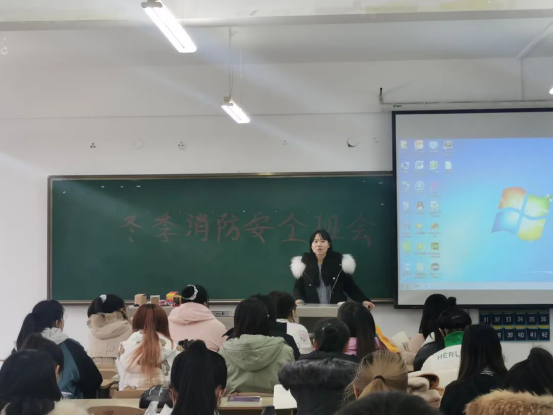 会议开始,18级辅导员李欢欢为同学们讲述了火灾带来的危害和造成的严重后果,要求大学生不仅要有防火意识,更要有突发紧急火灾情况的自救方法。在寝室要安全使用电器,严禁使用违规电器,要做到人走断电,不能将插排放在床上。若突发紧急火灾,要使用正确的自救方式,不能莽撞行事。要学会使用干粉灭火器,树立防火意识。