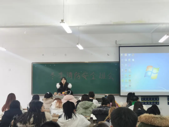 为了进一步贯彻学校火灾防控工作方案,加强安全宣传教育工作,普及消防基本知识,增强同学们消防安全意识,信息工程学院18级辅导员李欢欢于二教409召开班会。
