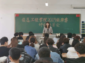 2020年11月6日中午12点信息工程学院于二教召开班委评估动员会。各级辅导员对即将到来的评估要求进行了详细的讲解与说明。对文明用语,礼貌出行,预防疫情,戴好口罩,提前进入教室禁止携带饮品,食物,上课起立问好,课上认真听讲,专心学习,进入教学楼上下通行等问题做出规定与指导。