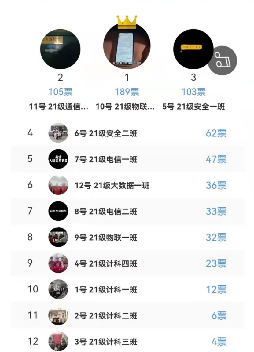 本次活动中,以寝室为单位,通过短视频的新颖方式为大家展现出寝室的风貌,在本次寝室评比活动中,荣获前三名的寝室分别来自21级物联二班、21级通信一班、21级安全一班。同学们对本次活动热情高涨,不少寝室纷纷参与到评比活动中去,借助短视频的拍摄,在为大家展现寝室文化与魅力的同时,也以多样化的形式为大家增添了不少乐趣,也进一步促进了寝室之间室友的情感联系,在当下严峻的疫情日常学习生活中,通过展现寝室的方式抚慰大家的心灵。