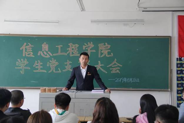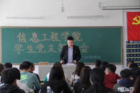 为加强基层党组织建设,吸收更多优秀入党积极分子加入党组织,5月28日,信息工程学院学生党支部在二教409召开支部大会。会议由学生党支部书记黄家政主持,信息工程学院党总支书记毛雷、团总支书记张宏鹏、以及学生支部全体正式党员、预备党员及部分党外人员参加此次大会。
