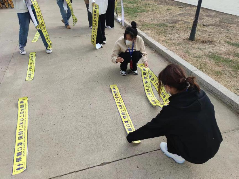 活动现场,为积极配合我院校园日常防疫工作的成功开展,有序组织学生群众核酸检测事宜,我院学生会干部纷纷投身于办实事活动当中,并通过粘贴核酸检测距离的贴纸展开了此次活动的帷幕;活动中,我院广大学生干部深刻体会学习到,群众路线是建设优秀校园文化氛围的根本路线,为人民服务是我院工作开展的根本宗旨。