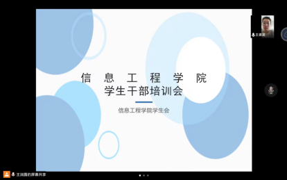 为进一步提高我院学生干部的综合素质,树立远大的理想,增强自我教育、自我管理能力、自我服务意识,以实际行动为我院广大学生做好服务工作,7月24日,信息工程学院于腾讯会议上举行了学生干部服务意识教育会议,本次会议由信息工程学院团总支书记王素君组织召开。