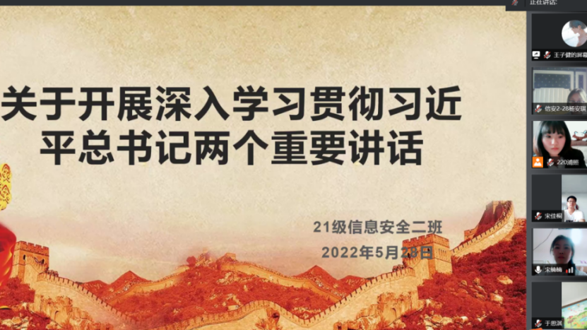 为持续深入学习贯彻习近平总书记两个重要讲话精神,深刻领会习近平总书记重要讲话的主旨要义、丰富内涵和实践要求,认真抓好习近平总书记重要讲话精神的贯彻落实,推动学习贯彻习近平总书记重要精神的见效,5月28日,信息工程学院组织开展了学习习近平总书记两个重要讲话精神的主题班会活动。此次主题班会活动分别由信息工程学院各年级辅导员老师主持,全体同学参加活动。