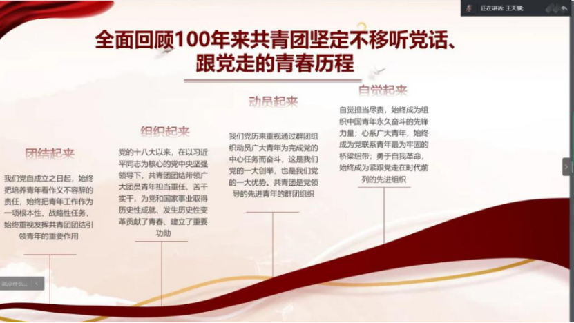活动中,各年级辅导老师,分别以线下线上相结合的方式进行开展,不仅通过视频学习资料、文献学习资料、解读习近平总书记两个重要讲话精神内容等多维度的学习方式,深入学习了习近平总书记两个重要讲话精神,还带领我院同学们深学细悟、反复研读、逐字消化习近平总书记重要讲话精神内容,常学常新、常悟常进、常践常得,不断加深对国家发展历史方位、阶段特征、指导理论、战略任务的理解把握,切实做到学懂弄通做实、牢筑思想根基,进一步引导我院青年学子做社会主义核心价值观的坚定信仰者、积极传播者、模范实践者。