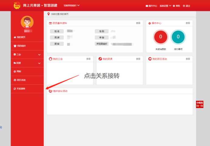 团员个人发起:团员登录系统进入个人中心,点击左侧“关系转接”菜单。按要求填写转接信息,注意转入组织填写为所在院系团委,提交即可详细流程如下:
