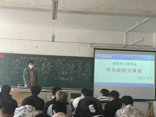 为帮助2022级同学更好的做好大学生涯规划,提高大一学生对专业知识和就业的进一步了解,培养学生的终身学习意识。2023年5月9日14:40于二教405,物联网工程专业开展了“学长经验分享会”活动,活动得到了院长和书记的积极支持。物联网工程专业系主任刘玉兰、教师戈力娟、王文峰、任雪、丁子佳和物联网工程专业2022级学生一起参加了本次活动。